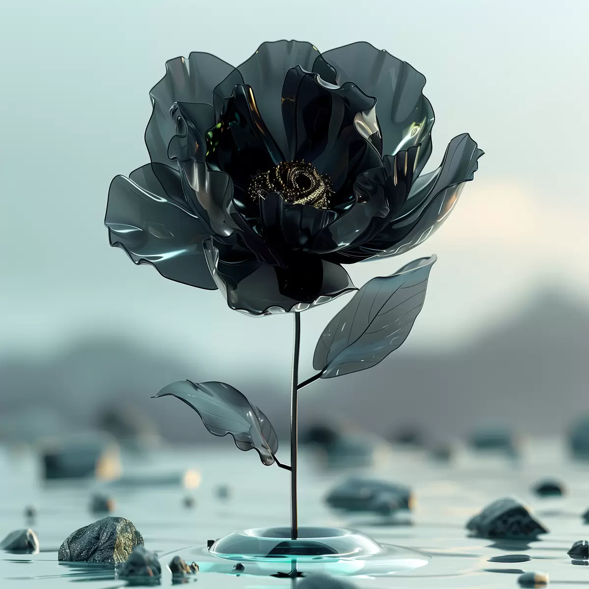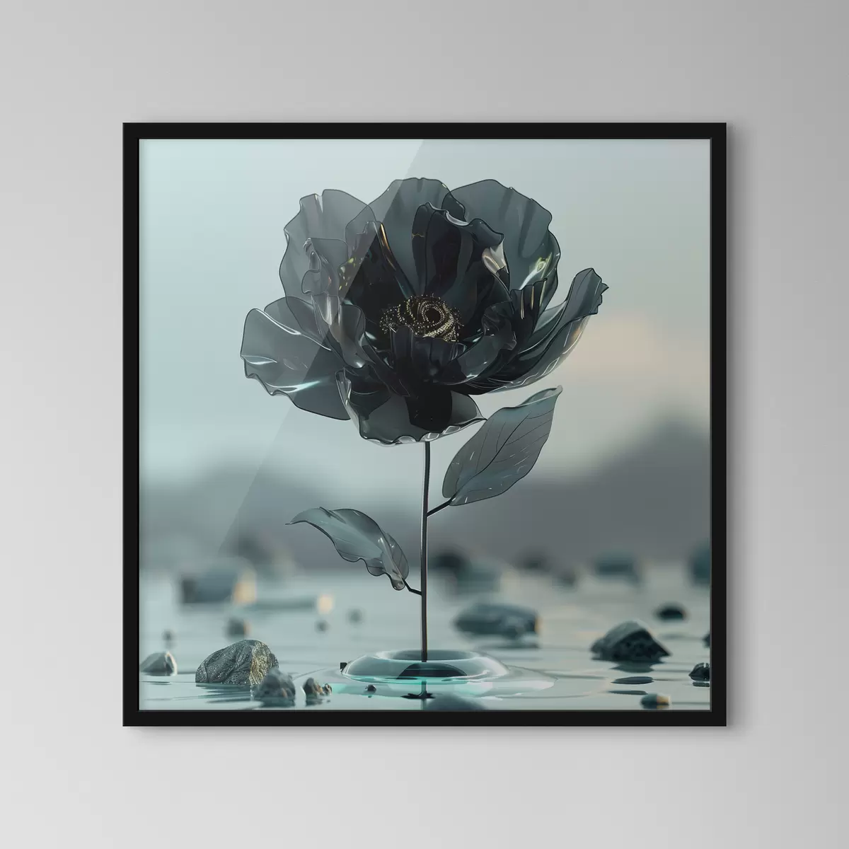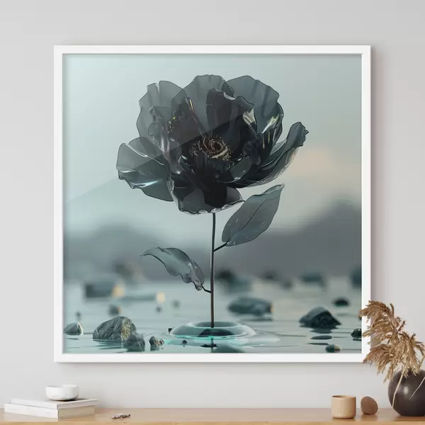 Plakatas Iš stiklo iškylanti juoda gėlė: popsurrealizmas ir Viktorijos laikų stilius f39633