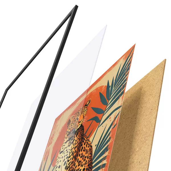 Plakatą sudaro rėmas, pleksiklas, atspausdintas vaizdas ir medžio drožlių plokštės pagrindas. Plakatą galima iš karto pakabinti ant sienos dėl kitoje pusėje esančių laikiklių.
