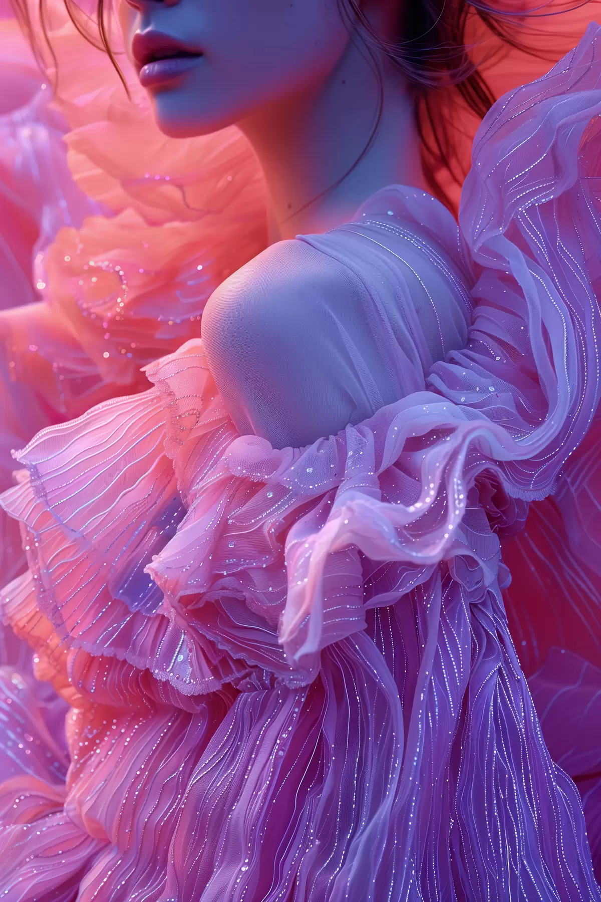 Plakatas Mergina rožinės ir violetinės spalvos suknele f39639