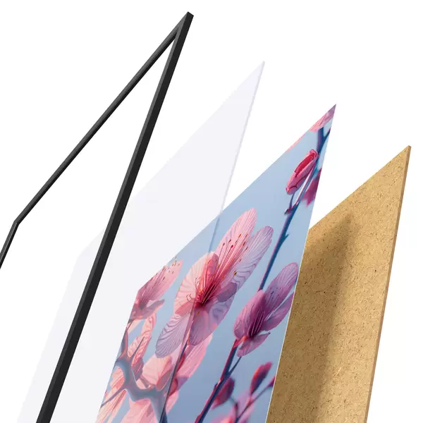 Plakatą sudaro rėmas, pleksiklas, atspausdintas vaizdas ir medžio drožlių plokštės pagrindas. Plakatą galima iš karto pakabinti ant sienos dėl kitoje pusėje esančių laikiklių.