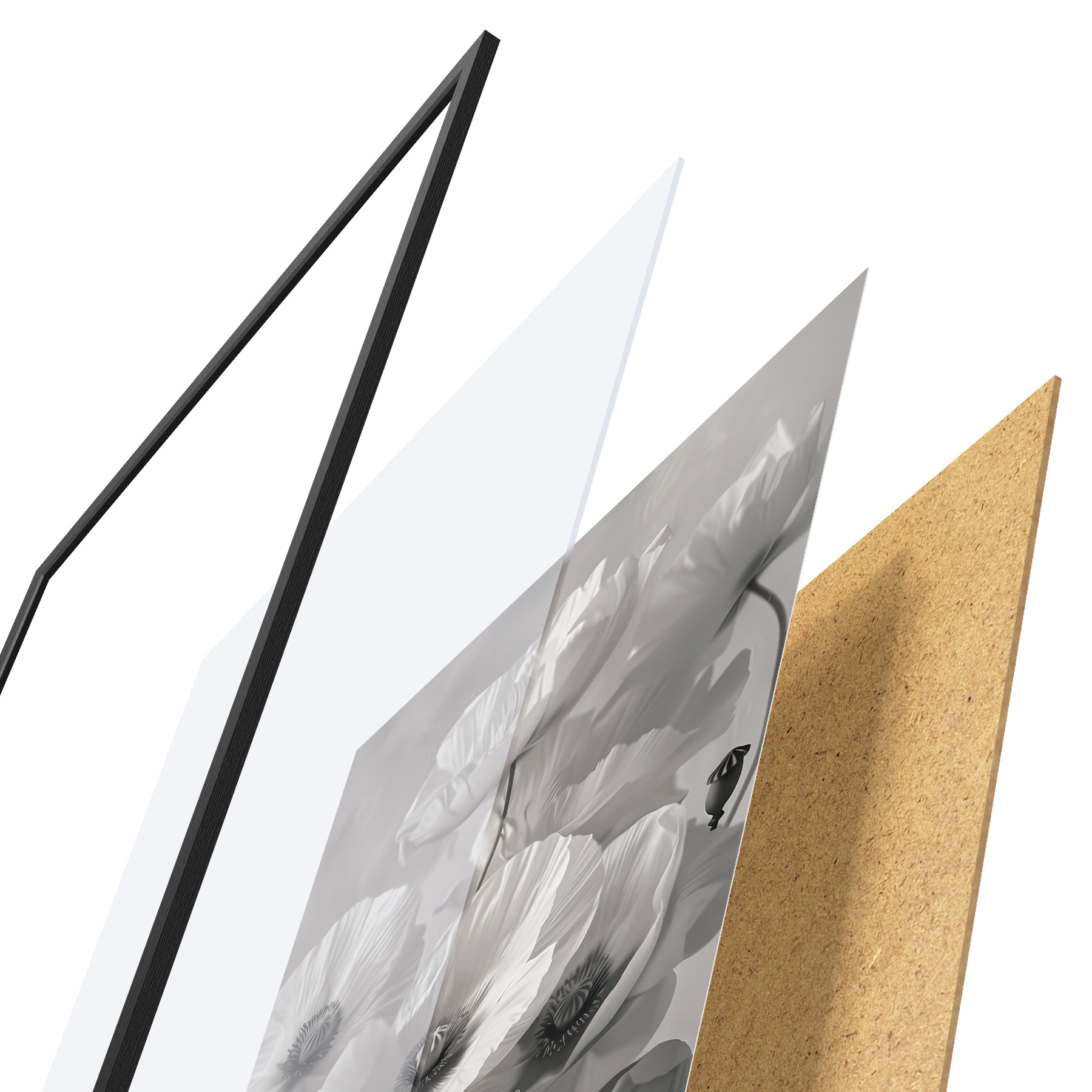 Plakatą sudaro rėmas, pleksiklas, atspausdintas vaizdas ir medžio drožlių plokštės pagrindas. Plakatą galima iš karto pakabinti ant sienos dėl kitoje pusėje esančių laikiklių.