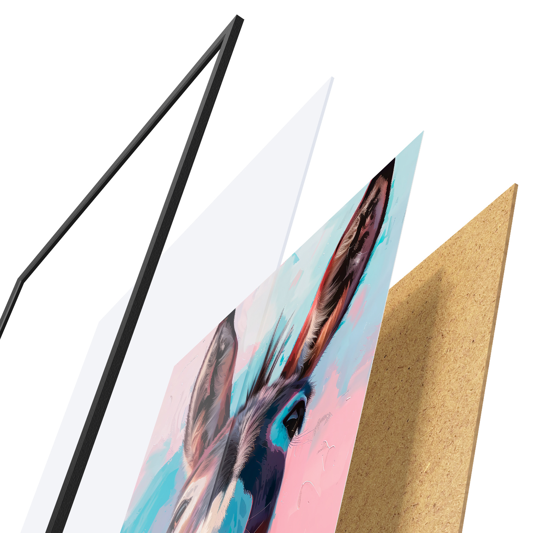 Plakatą sudaro rėmas, pleksiklas, atspausdintas vaizdas ir medžio drožlių plokštės pagrindas. Plakatą galima iš karto pakabinti ant sienos dėl kitoje pusėje esančių laikiklių.