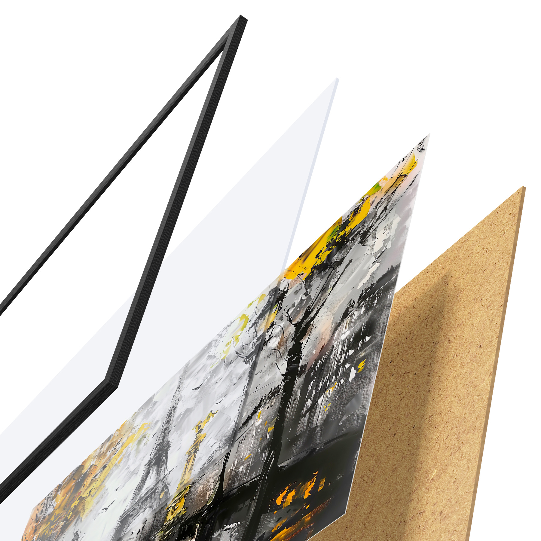Plakatą sudaro rėmas, pleksiklas, atspausdintas vaizdas ir medžio drožlių plokštės pagrindas. Plakatą galima iš karto pakabinti ant sienos dėl kitoje pusėje esančių laikiklių.