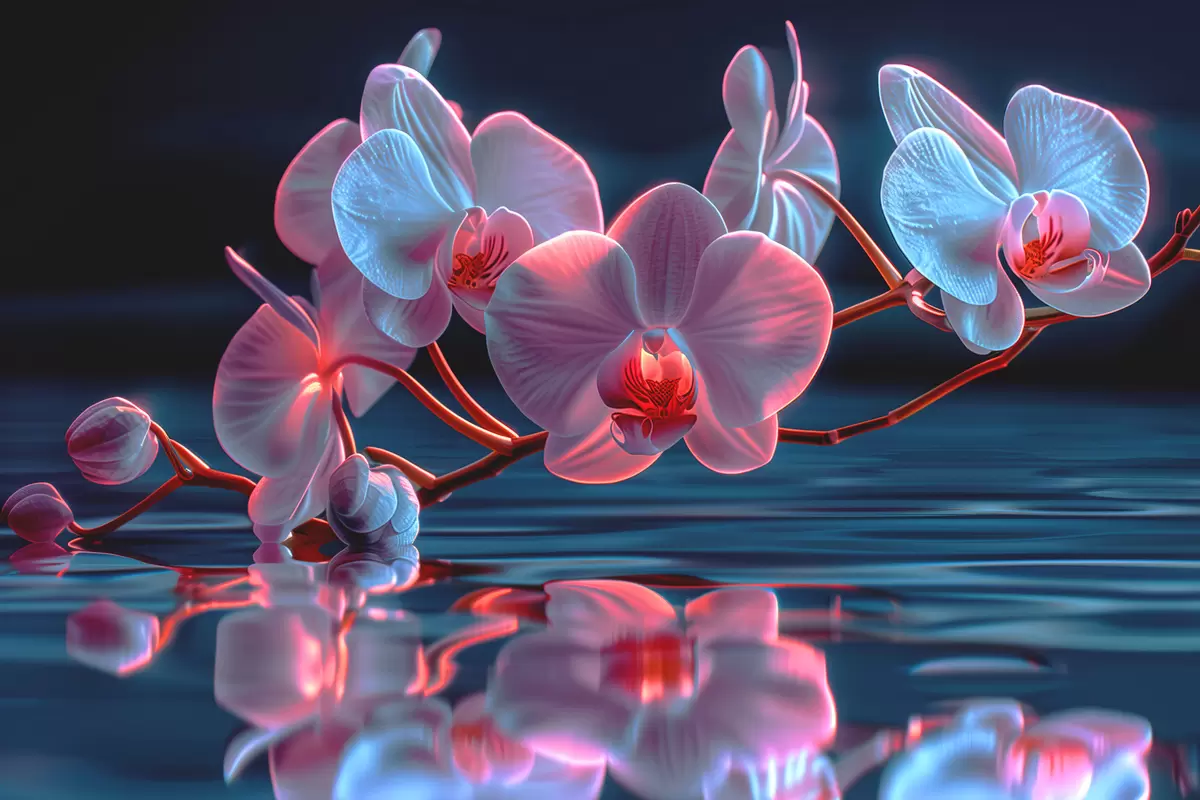 Plakatas Violetinės orchidėjos su atspindžiu ant vandens f39715