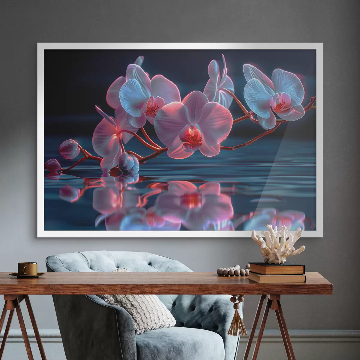 Plakatas Violetinės orchidėjos su atspindžiu ant vandens Ne f39715