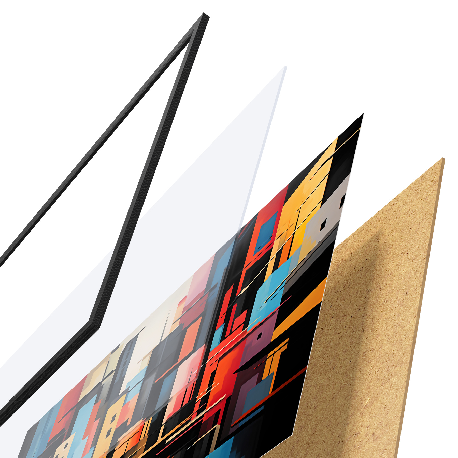Plakatą sudaro rėmas, pleksiklas, atspausdintas vaizdas ir medžio drožlių plokštės pagrindas. Plakatą galima iš karto pakabinti ant sienos dėl kitoje pusėje esančių laikiklių.