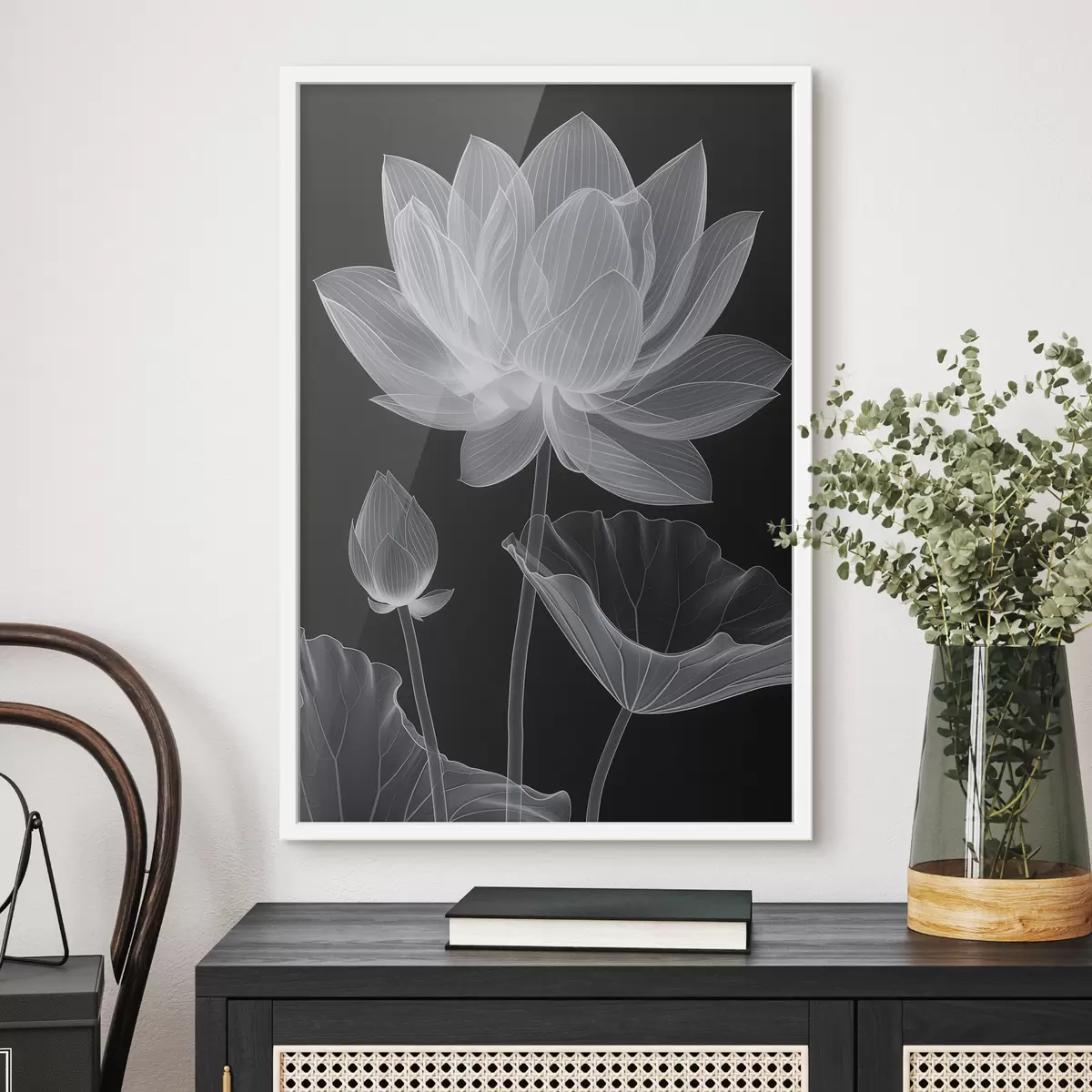 Plakatas Subtilus permatomas lotosas tamsiame fone f39717