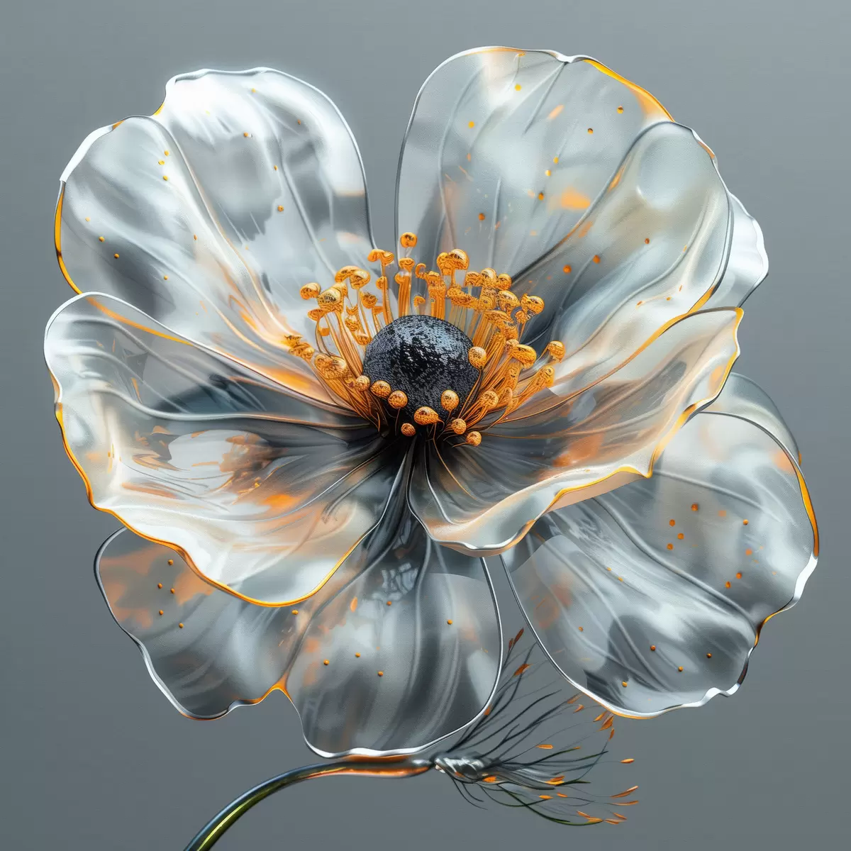 Plakatas Pilka gėlė skysto metalo stiliaus Ne f39719