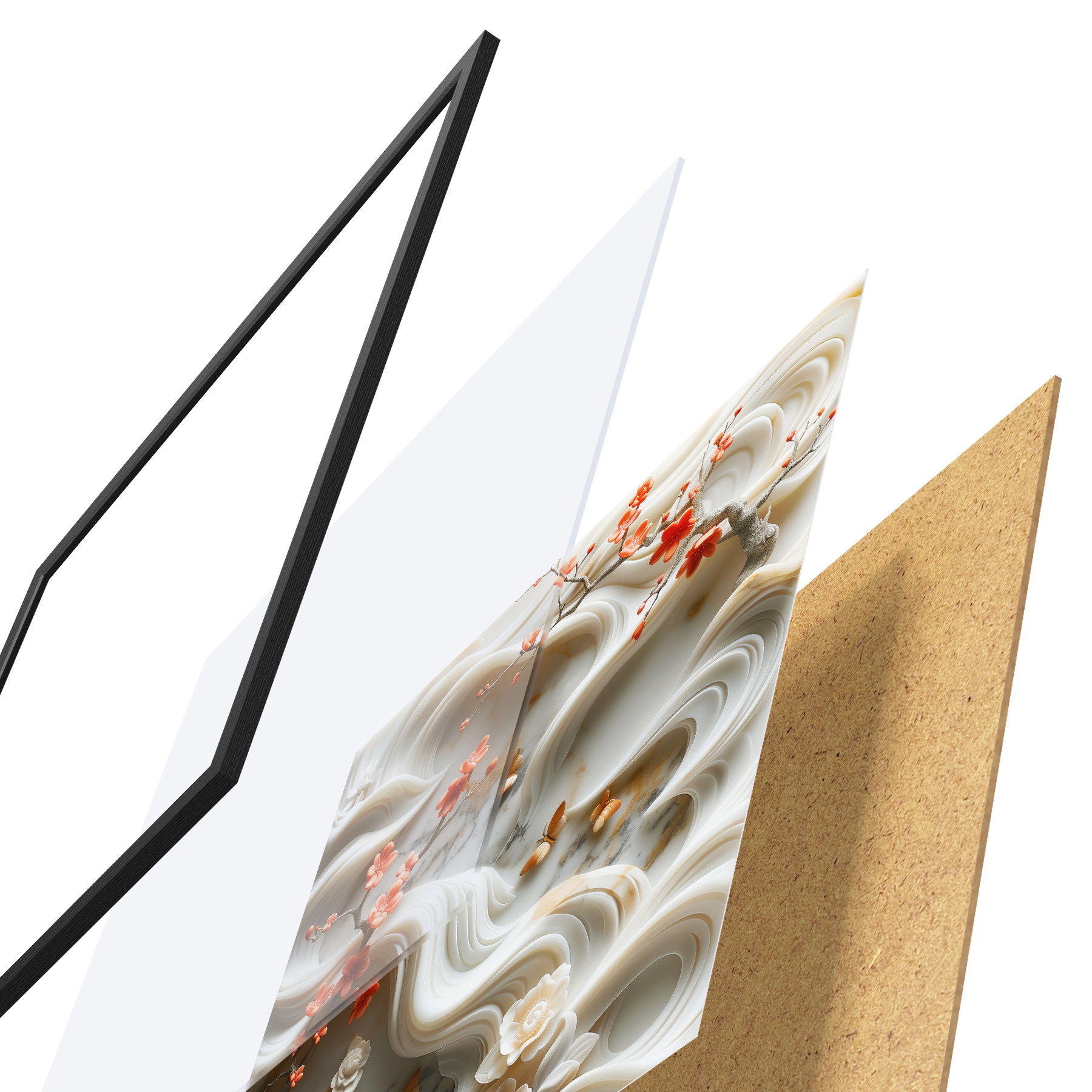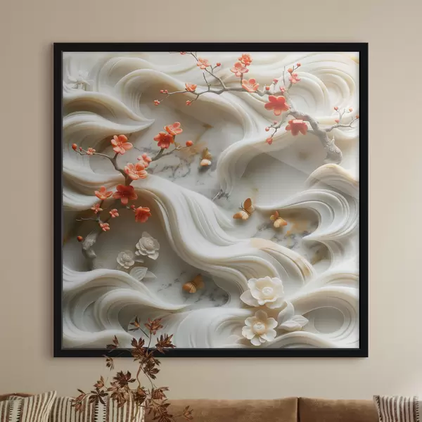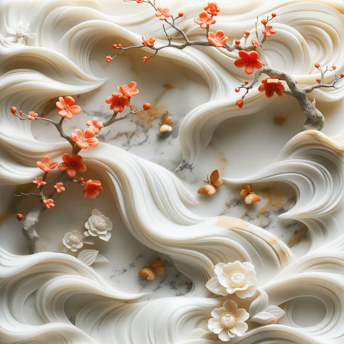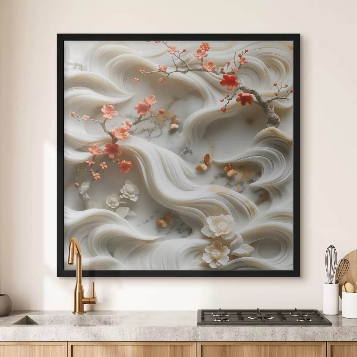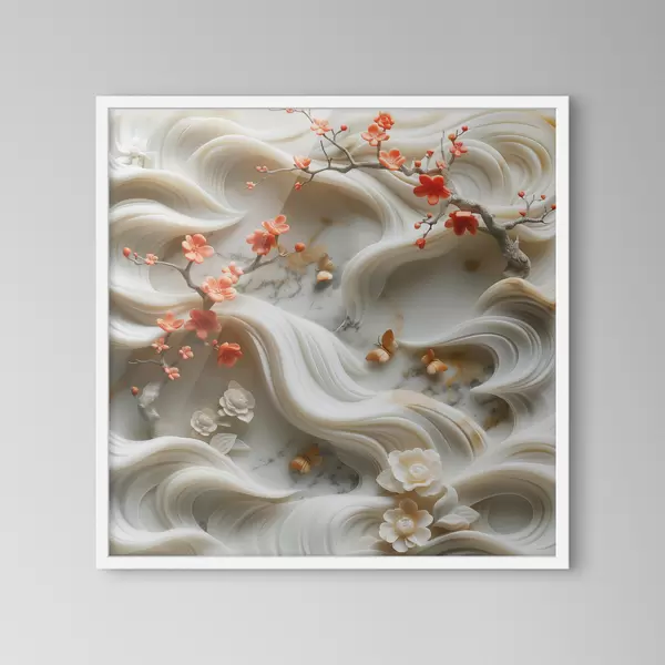 Plakatas Dangiška 3D sodo scena, iškalta iš balto marmuro su augmenija ir gyvūnija f39727