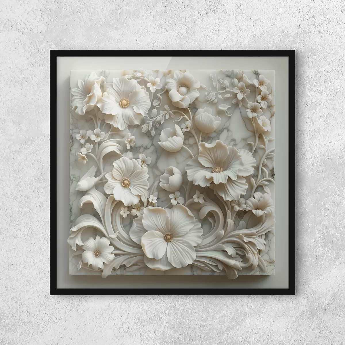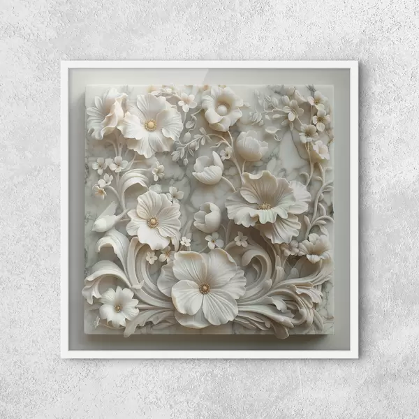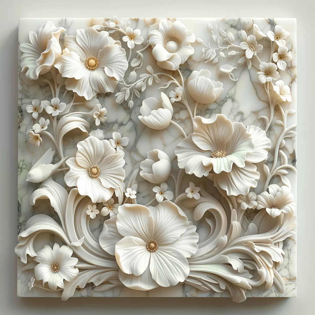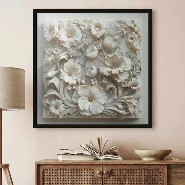 Plakatas Balto marmuro sodas su paukščių bareljefu f39729