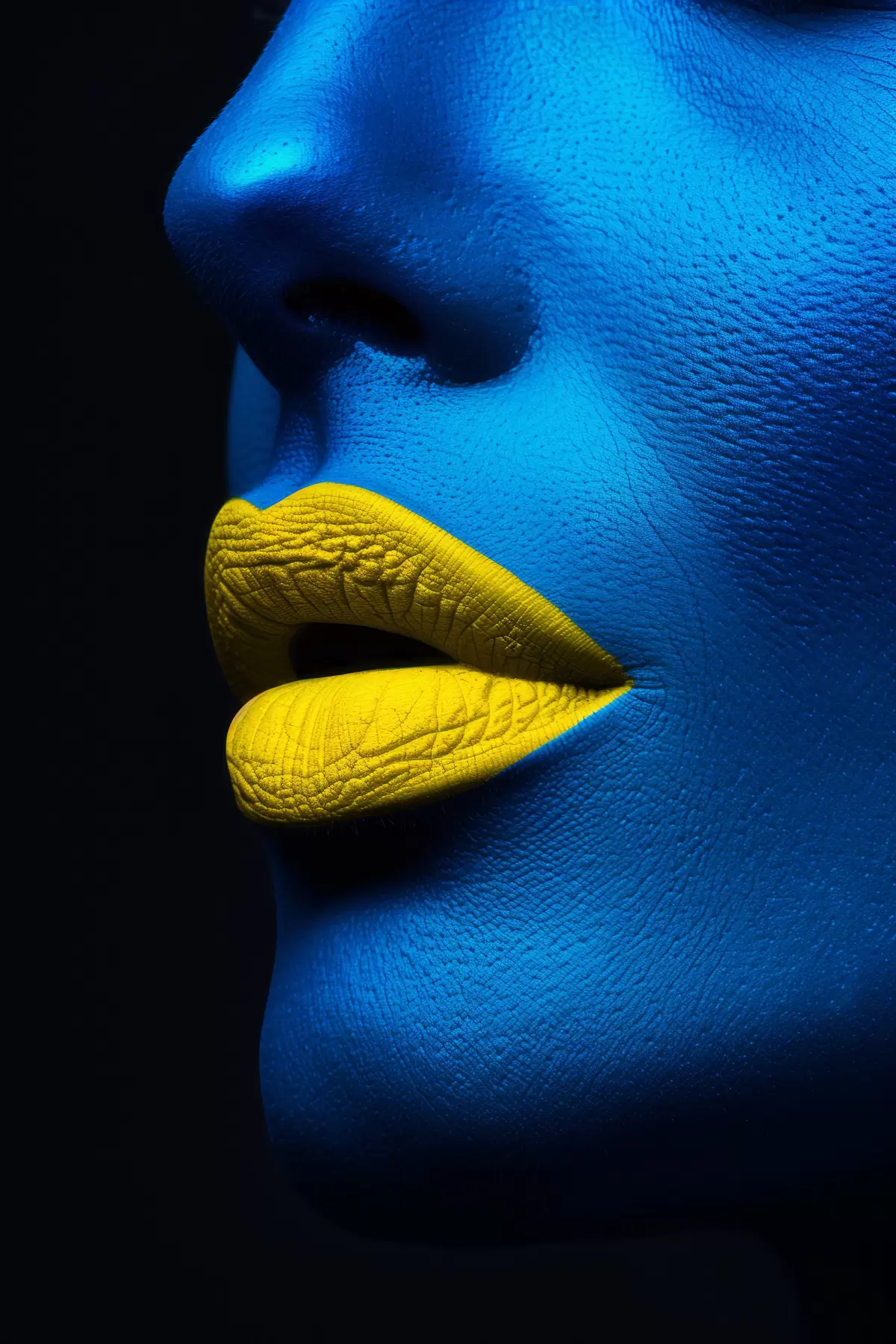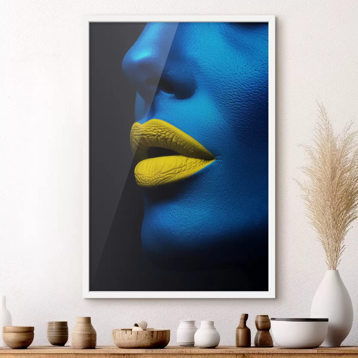 Plakatas Mėlynas veidas su geltonomis lūpomis f39733