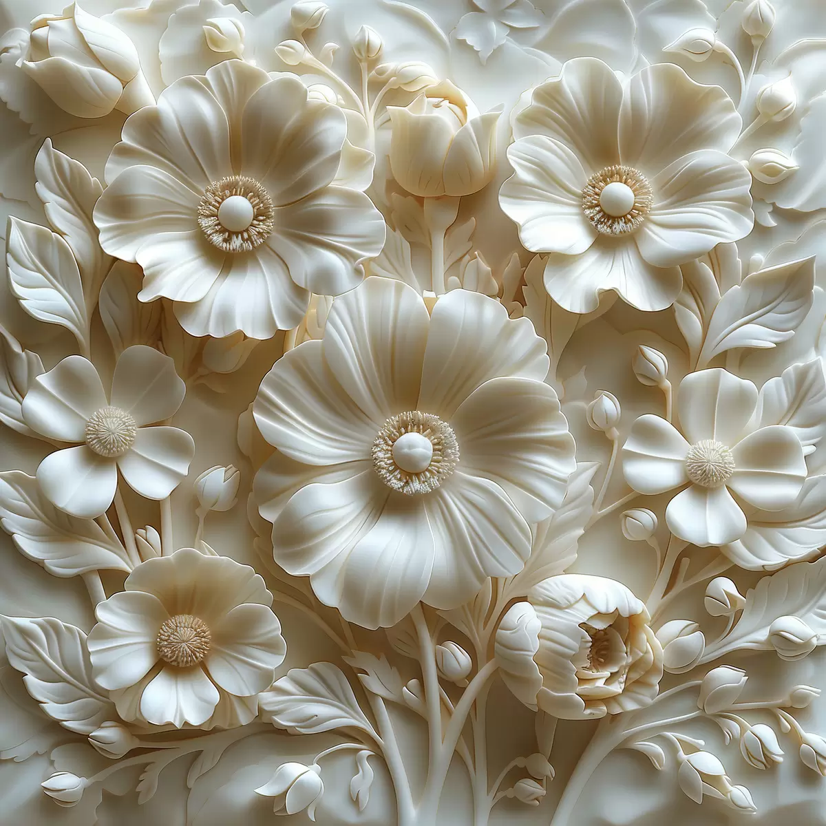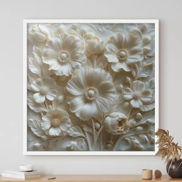 Plakatas Gėlių sodas su balto marmuro bareljefu f39737