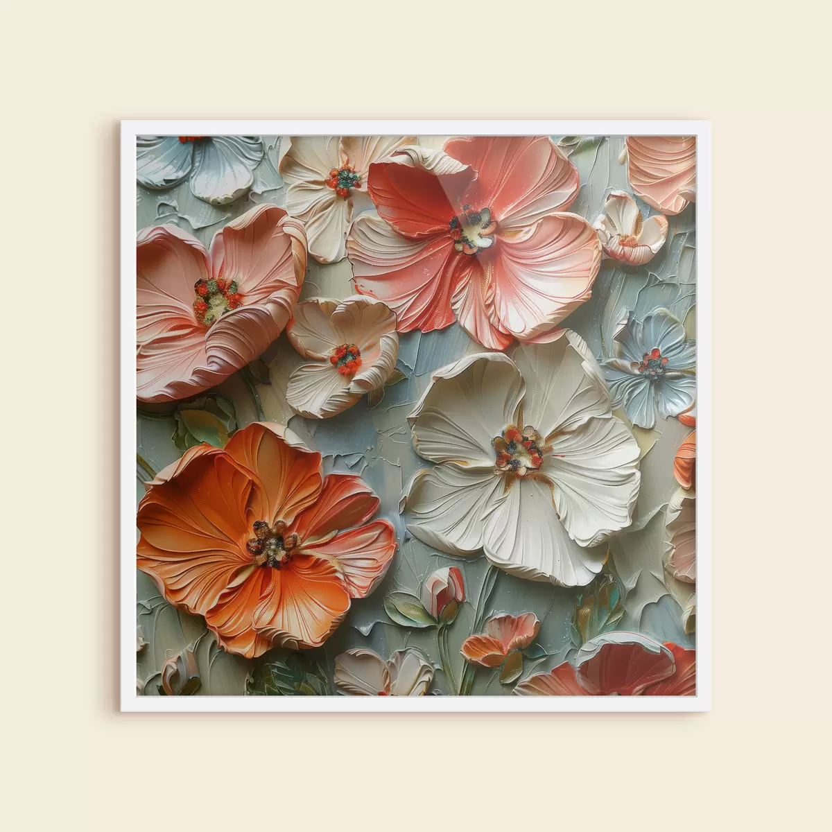 Plakatas Skulptūrinė tapyba su pastelinėmis džiovintomis gėlėmis ir akcentais Ne f39748