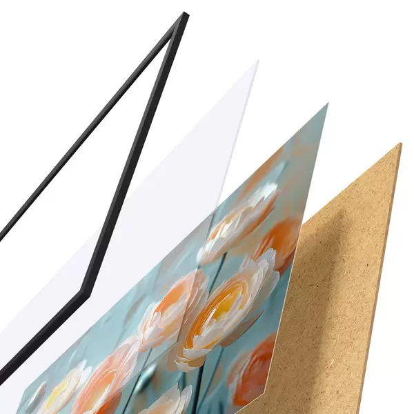 Plakatą sudaro rėmas, pleksiklas, atspausdintas vaizdas ir medžio drožlių plokštės pagrindas. Plakatą galima iš karto pakabinti ant sienos dėl kitoje pusėje esančių laikiklių.