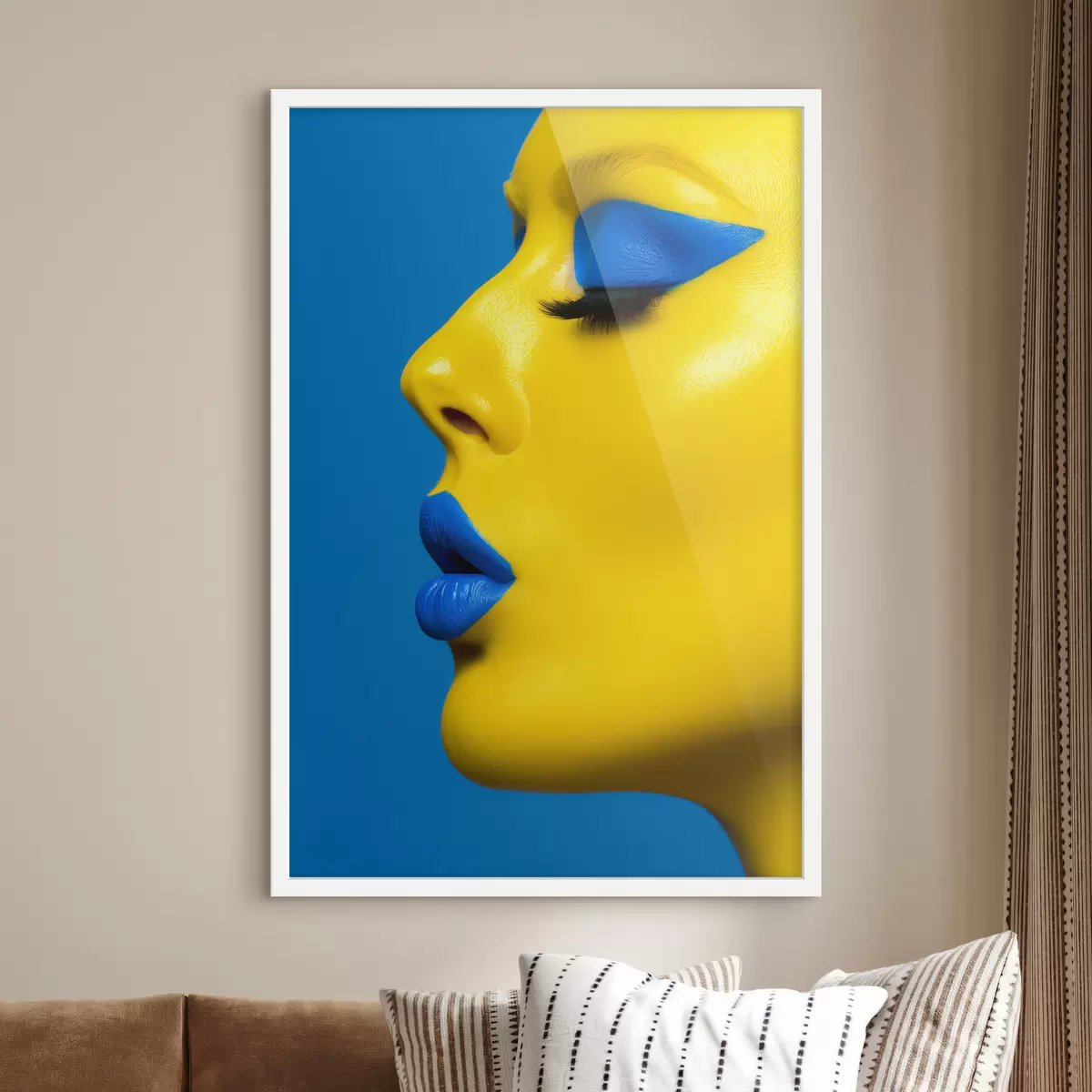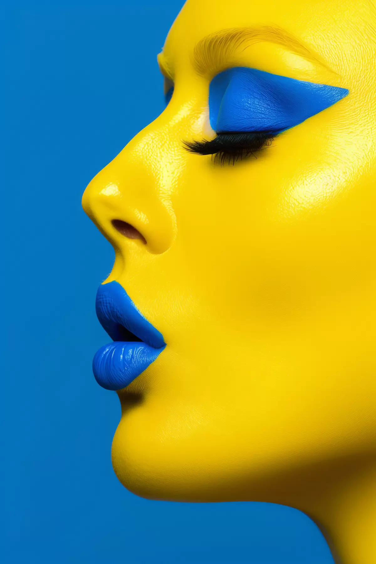 Plakatas Mėlynos ir geltonos spalvos merginos veidas f39759