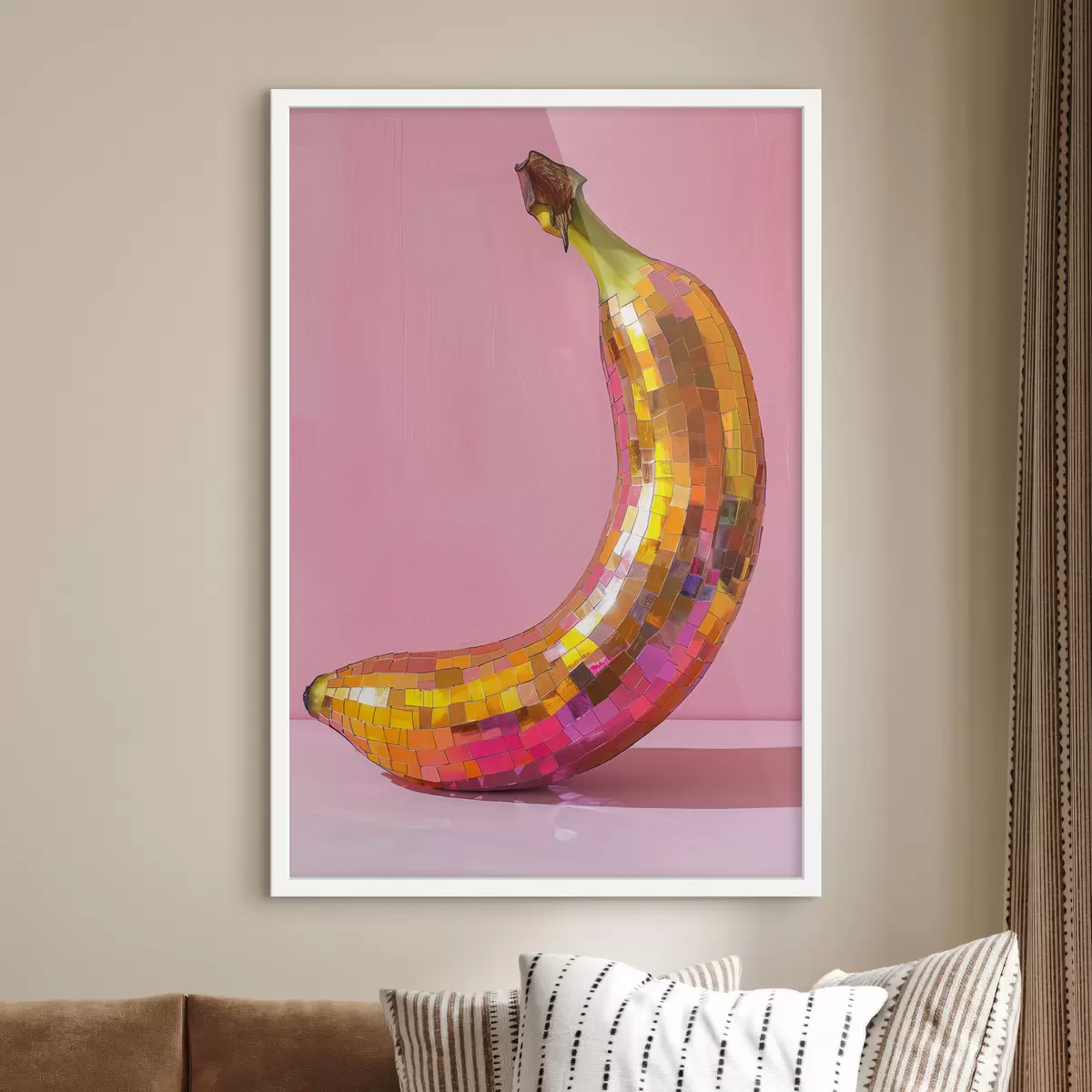 Plakatas Aliejumi dažytas banay disko kamuolys su šviesiai pasteliniu rožiniu fonu f39766