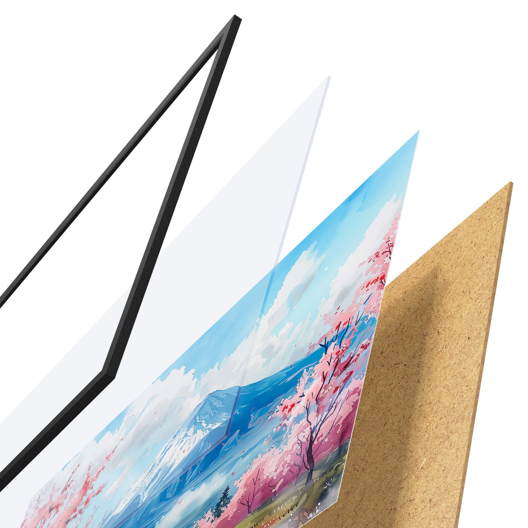 Plakatas Fudži kalnų peizažas, pavasarį žydinti gamta, vyšnios, japoniška Ne f39777