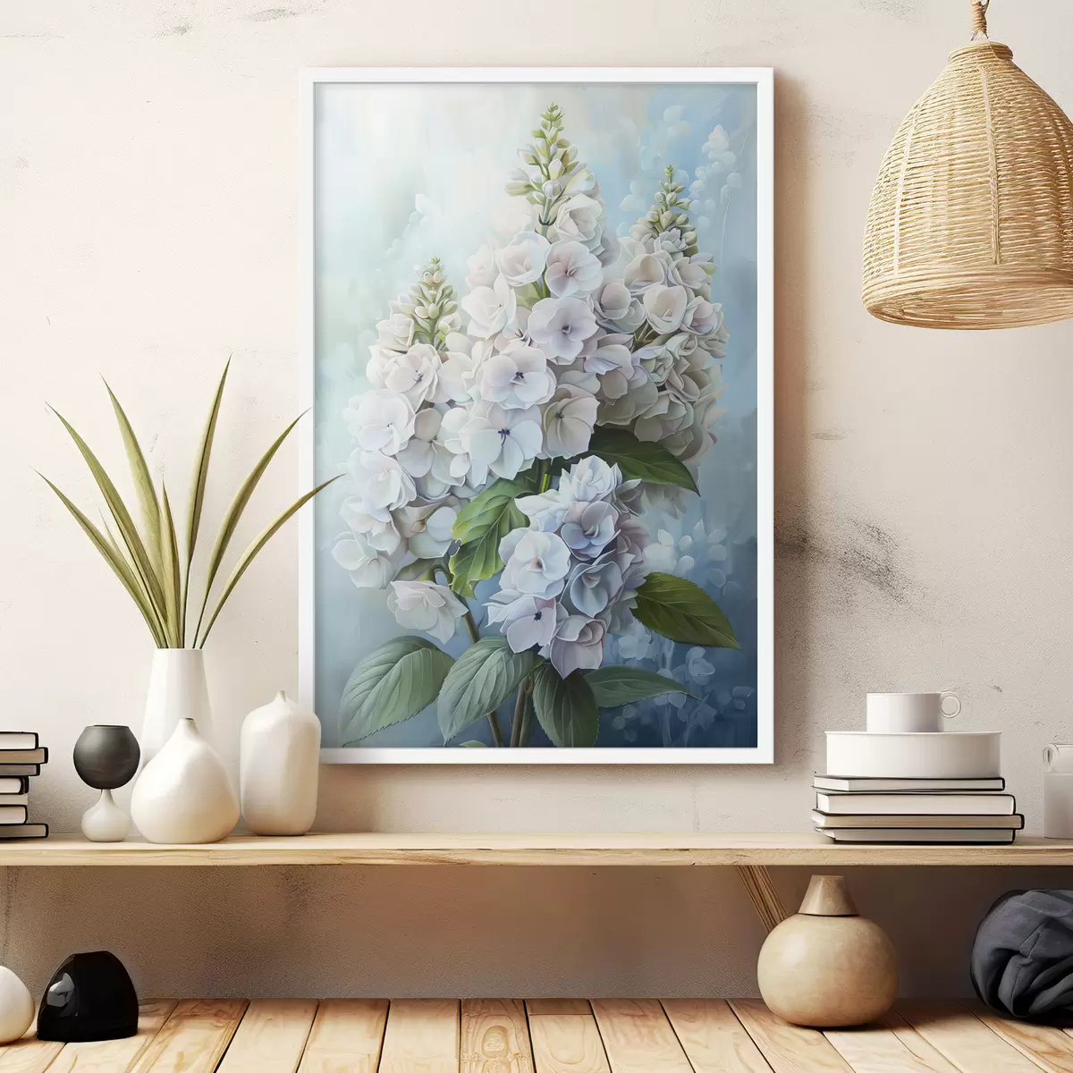 Plakatas Violetinė hortenzijos gėlė, švelnios natūralios spalvos, piešinys akvarele Ne f39783