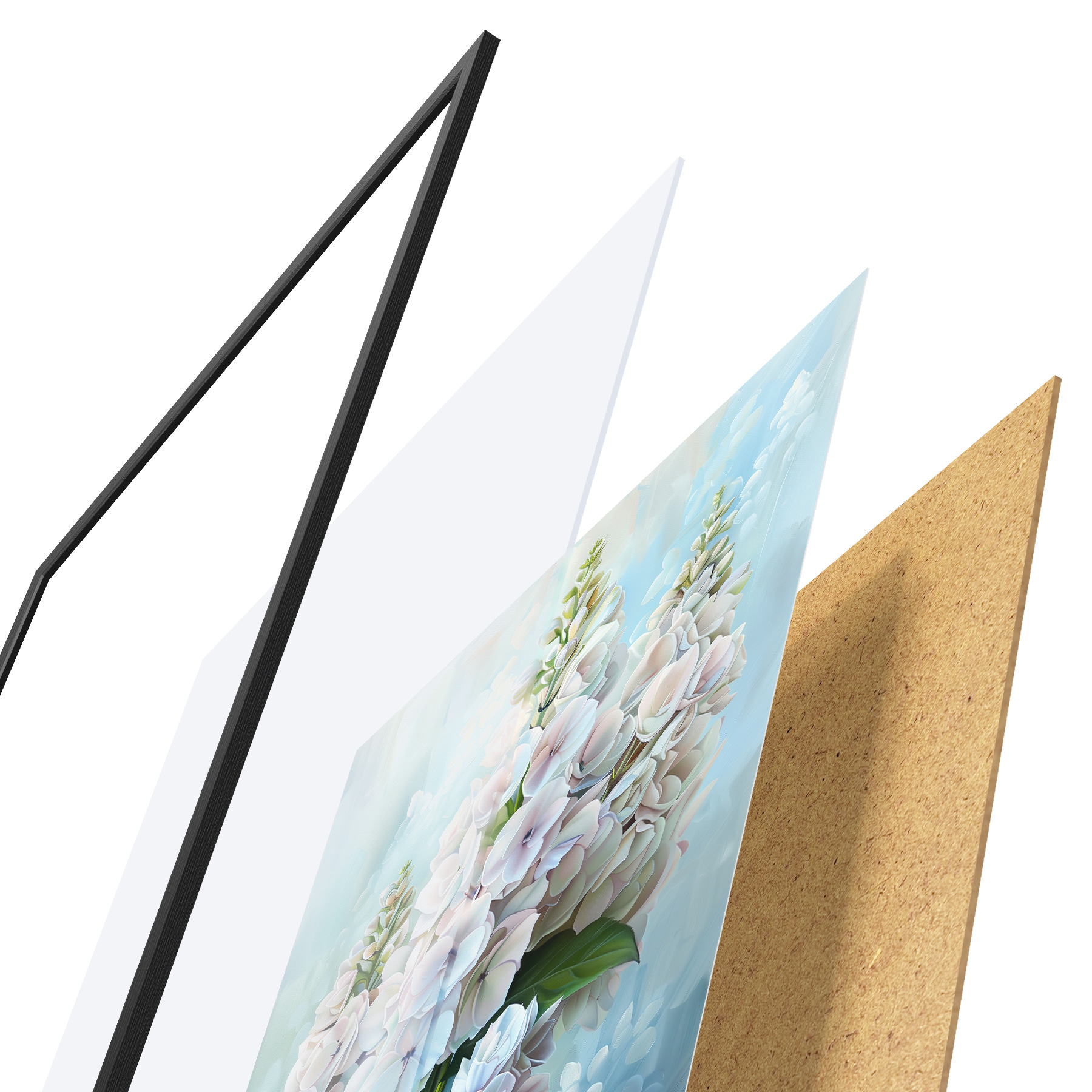 Plakatą sudaro rėmas, pleksiklas, atspausdintas vaizdas ir medžio drožlių plokštės pagrindas. Plakatą galima iš karto pakabinti ant sienos dėl kitoje pusėje esančių laikiklių.