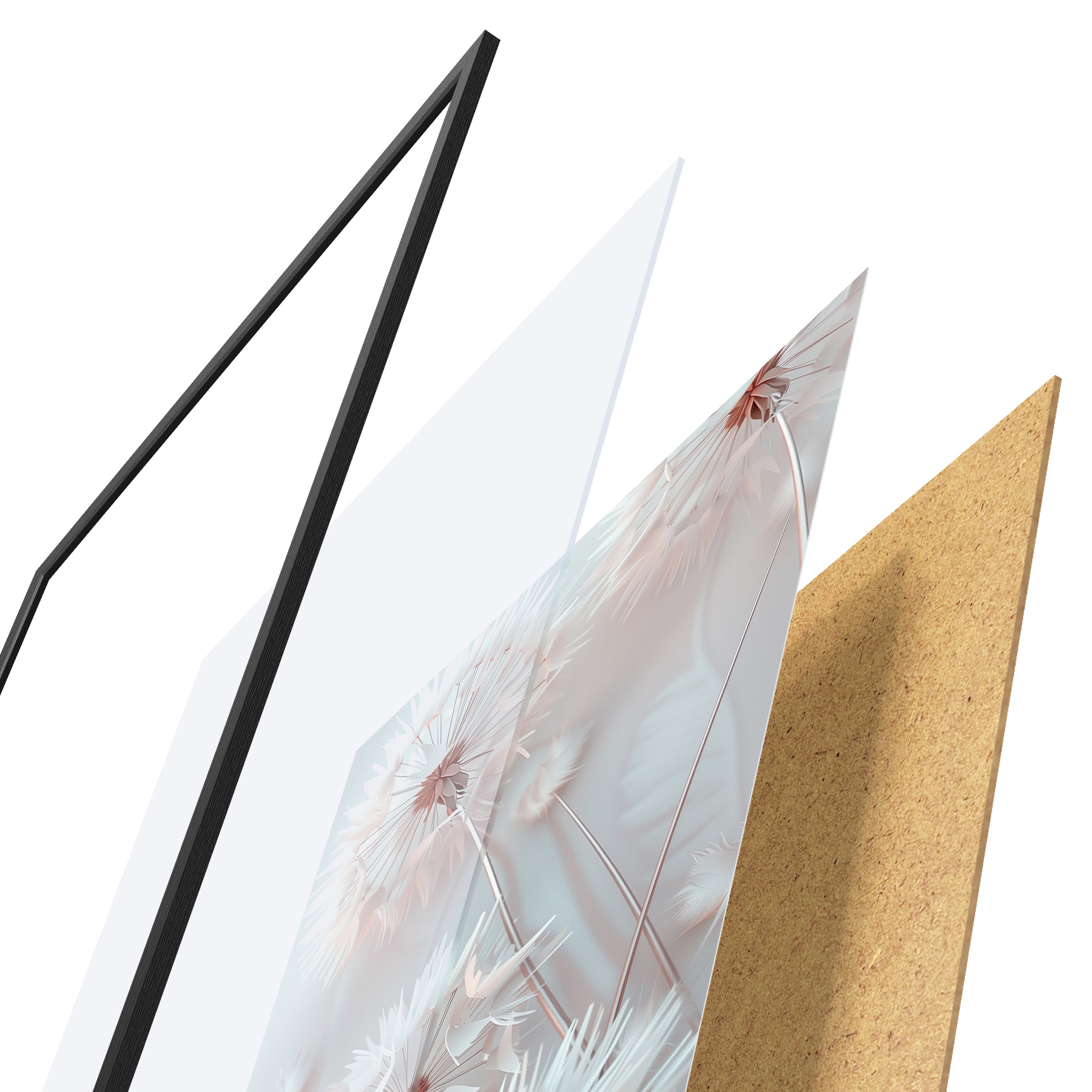 Plakatą sudaro rėmas, pleksiklas, atspausdintas vaizdas ir medžio drožlių plokštės pagrindas. Plakatą galima iš karto pakabinti ant sienos dėl kitoje pusėje esančių laikiklių.