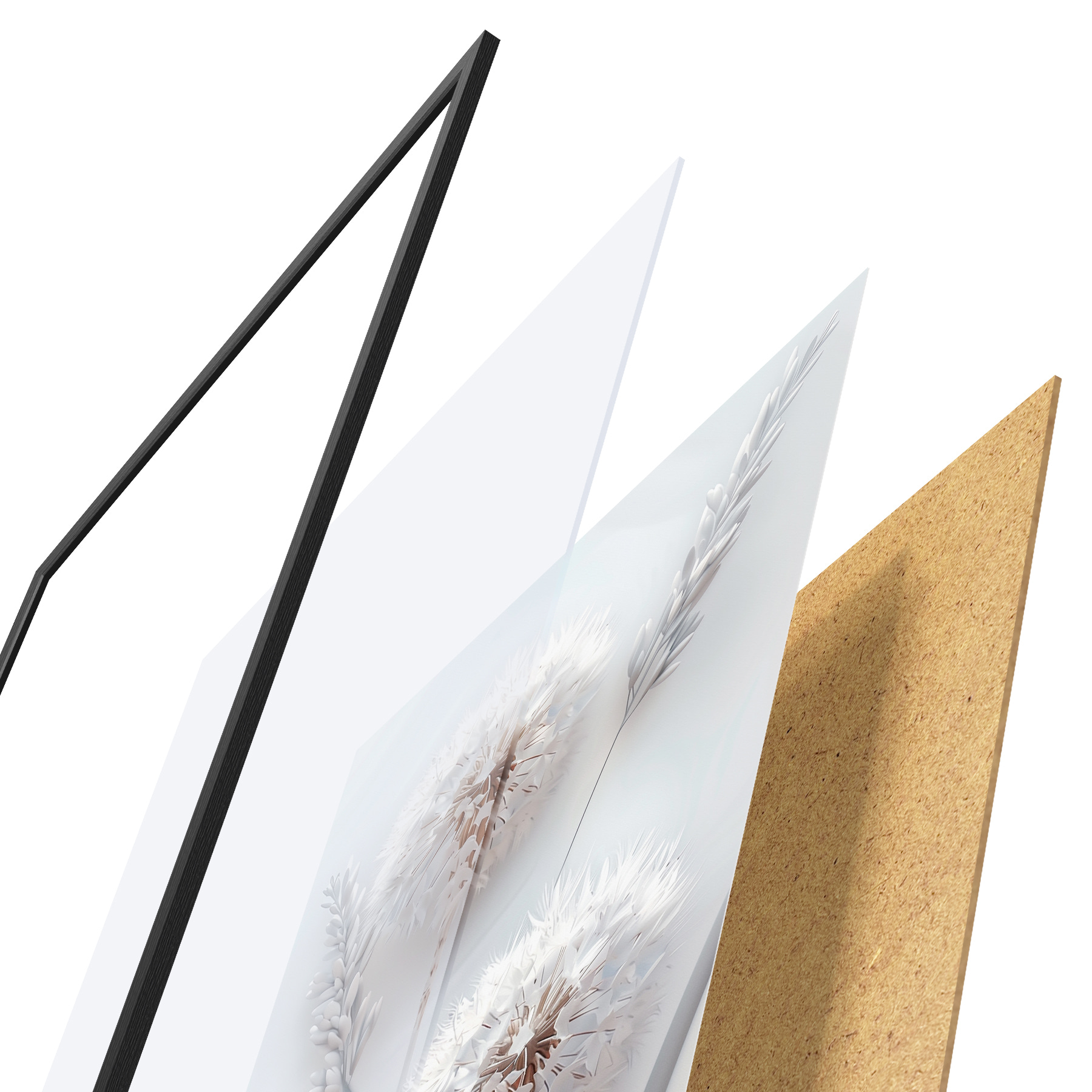 Plakatą sudaro rėmas, pleksiklas, atspausdintas vaizdas ir medžio drožlių plokštės pagrindas. Plakatą galima iš karto pakabinti ant sienos dėl kitoje pusėje esančių laikiklių.