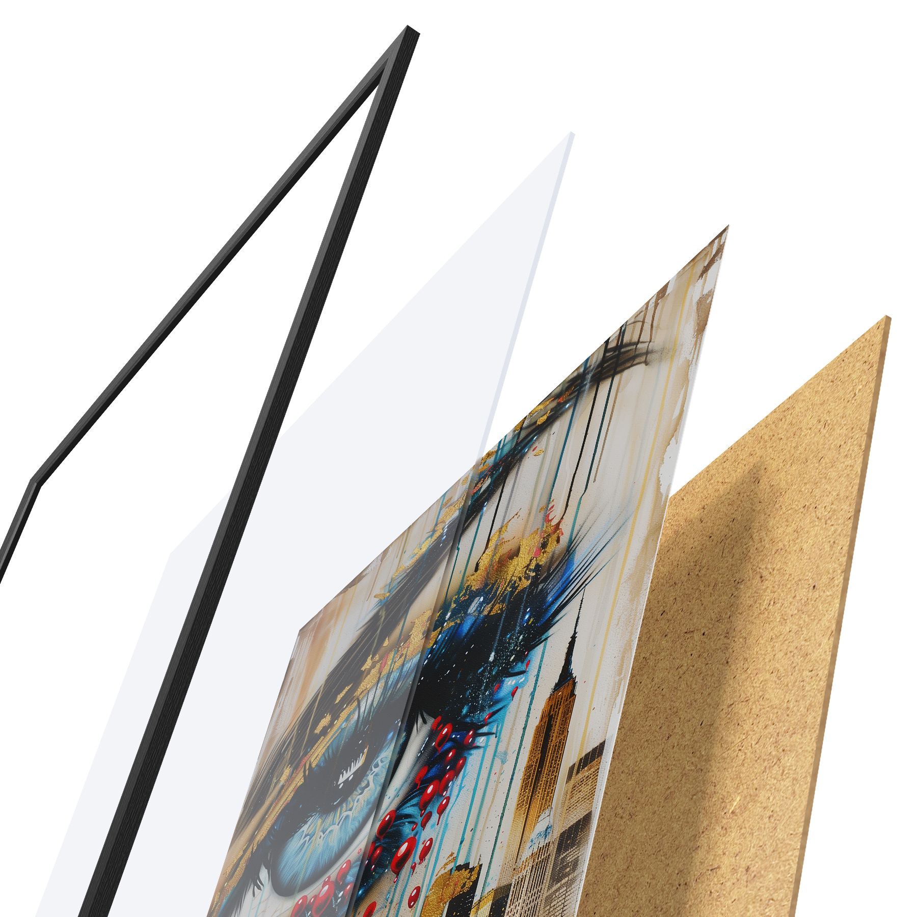 Plakatą sudaro rėmas, pleksiklas, atspausdintas vaizdas ir medžio drožlių plokštės pagrindas. Plakatą galima iš karto pakabinti ant sienos dėl kitoje pusėje esančių laikiklių.