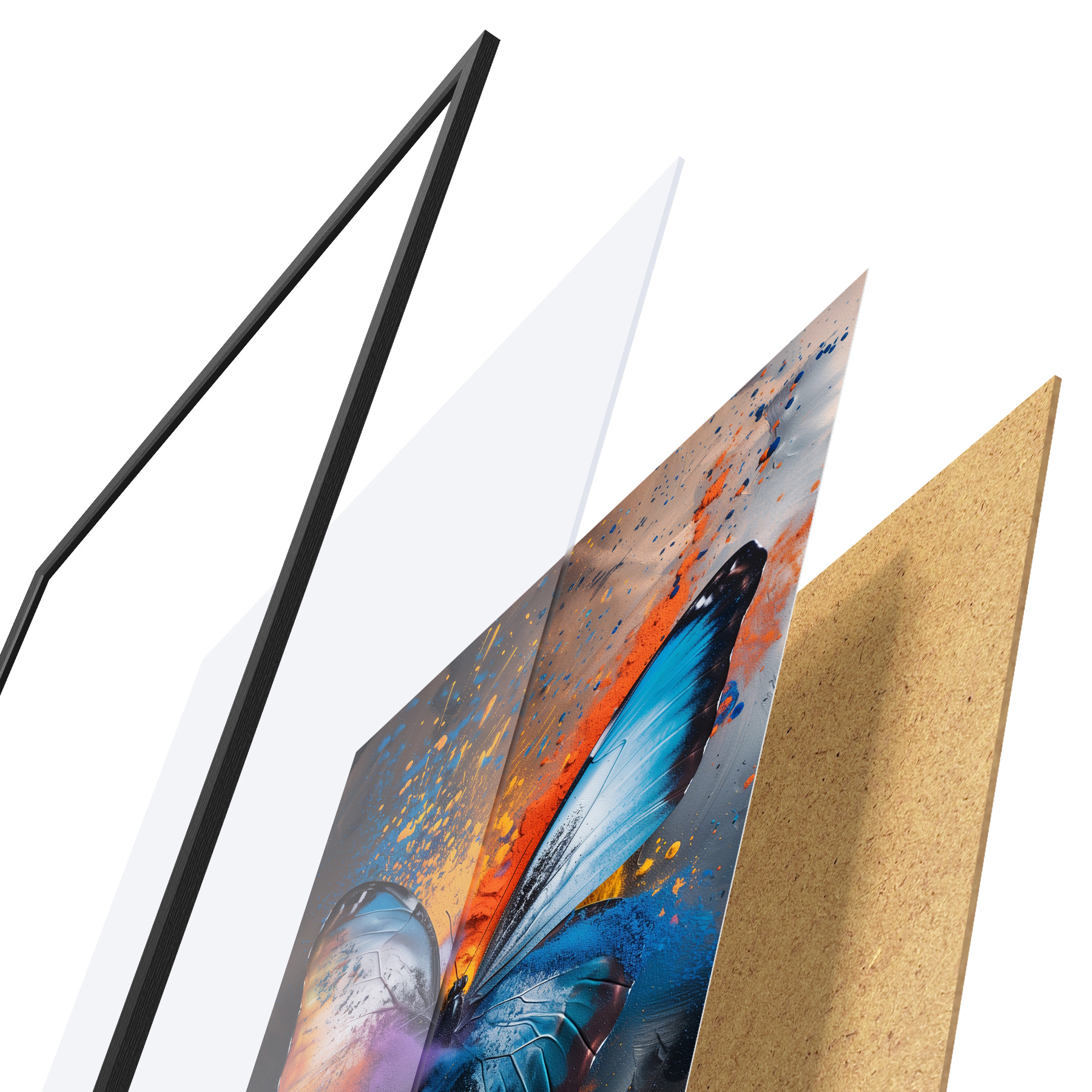 Plakatą sudaro rėmas, pleksiklas, atspausdintas vaizdas ir medžio drožlių plokštės pagrindas. Plakatą galima iš karto pakabinti ant sienos dėl kitoje pusėje esančių laikiklių.