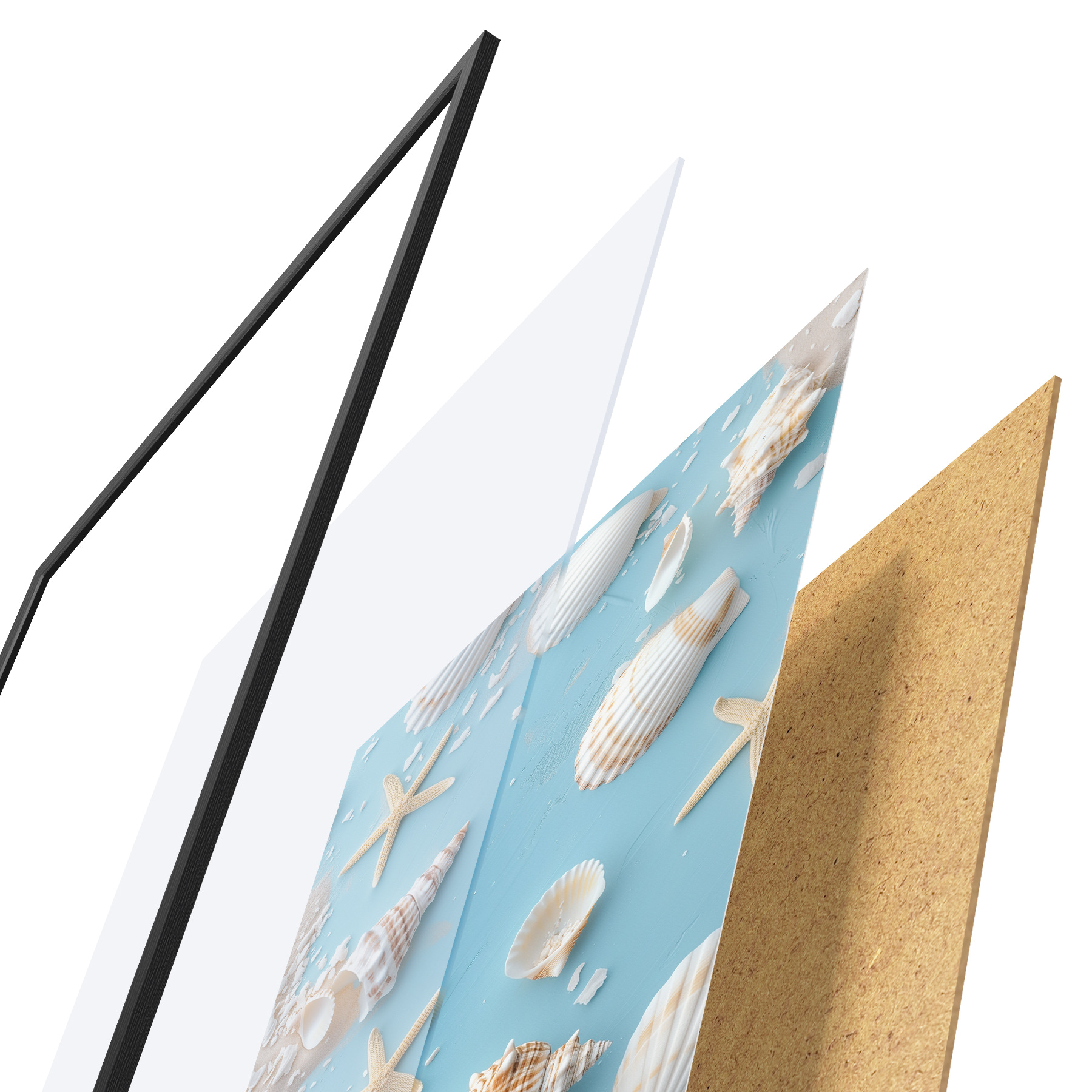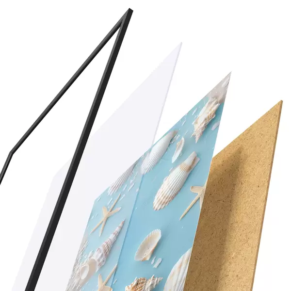 Plakatą sudaro rėmas, pleksiklas, atspausdintas vaizdas ir medžio drožlių plokštės pagrindas. Plakatą galima iš karto pakabinti ant sienos dėl kitoje pusėje esančių laikiklių.