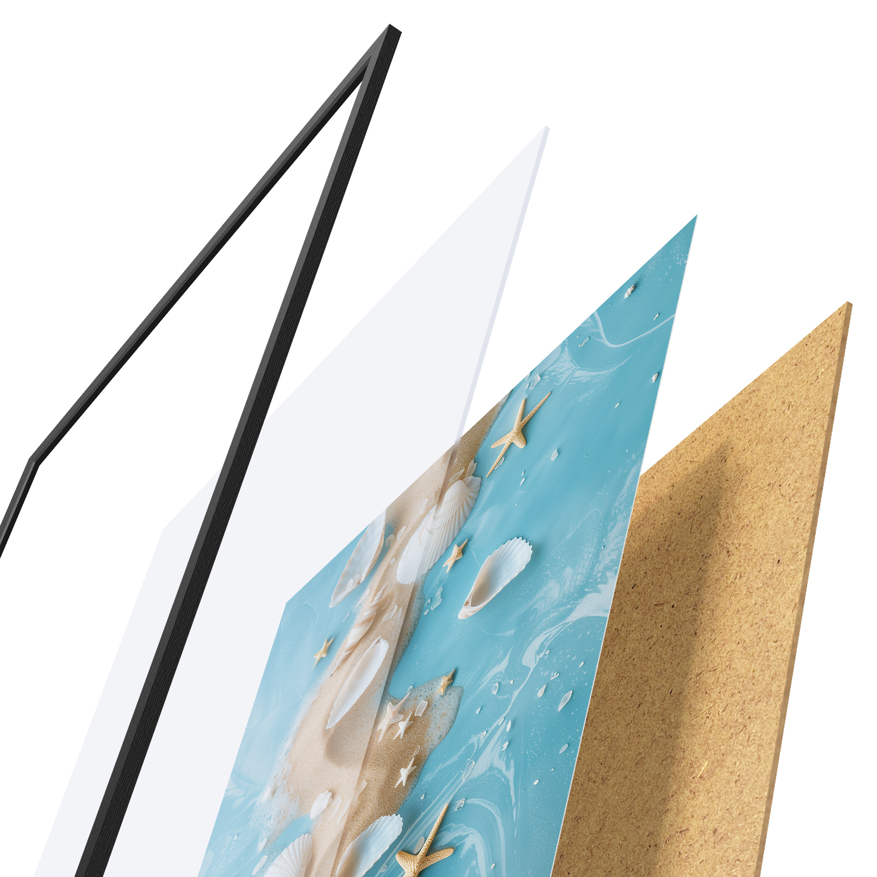 Plakatą sudaro rėmas, pleksiklas, atspausdintas vaizdas ir medžio drožlių plokštės pagrindas. Plakatą galima iš karto pakabinti ant sienos dėl kitoje pusėje esančių laikiklių.