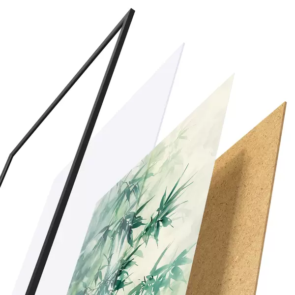 Plakatą sudaro rėmas, pleksiklas, atspausdintas vaizdas ir medžio drožlių plokštės pagrindas. Plakatą galima iš karto pakabinti ant sienos dėl kitoje pusėje esančių laikiklių.