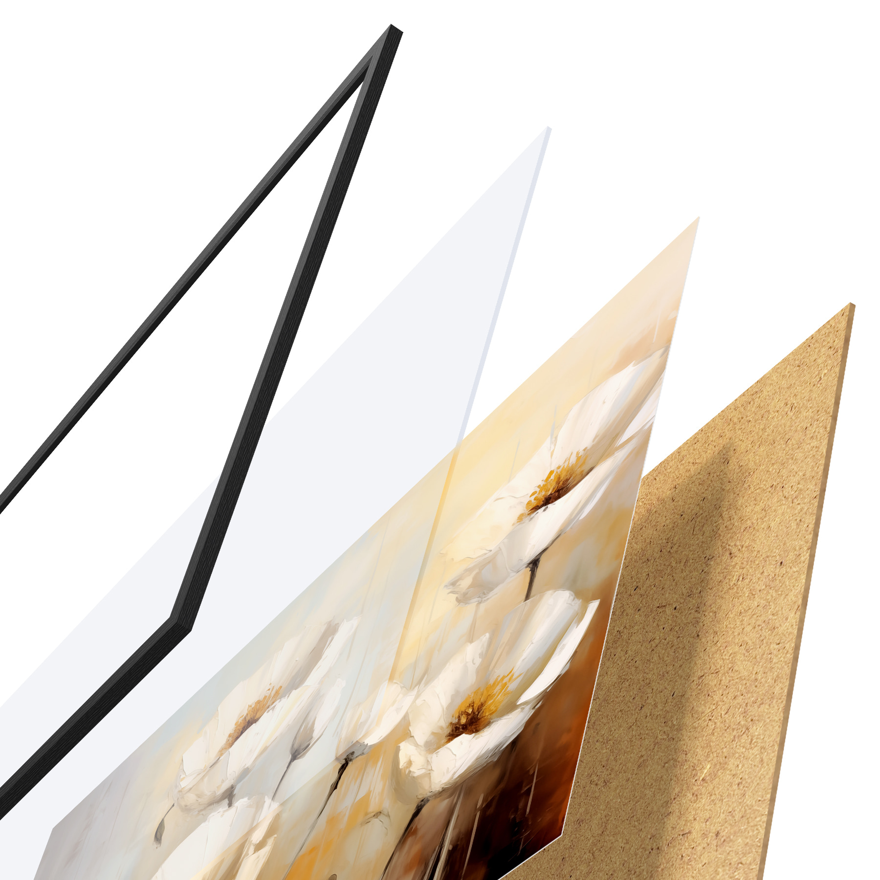 Plakatas Baltųjų aguonų aliejinė tapyba, mėlynos ir oranžinės spalvos f39815