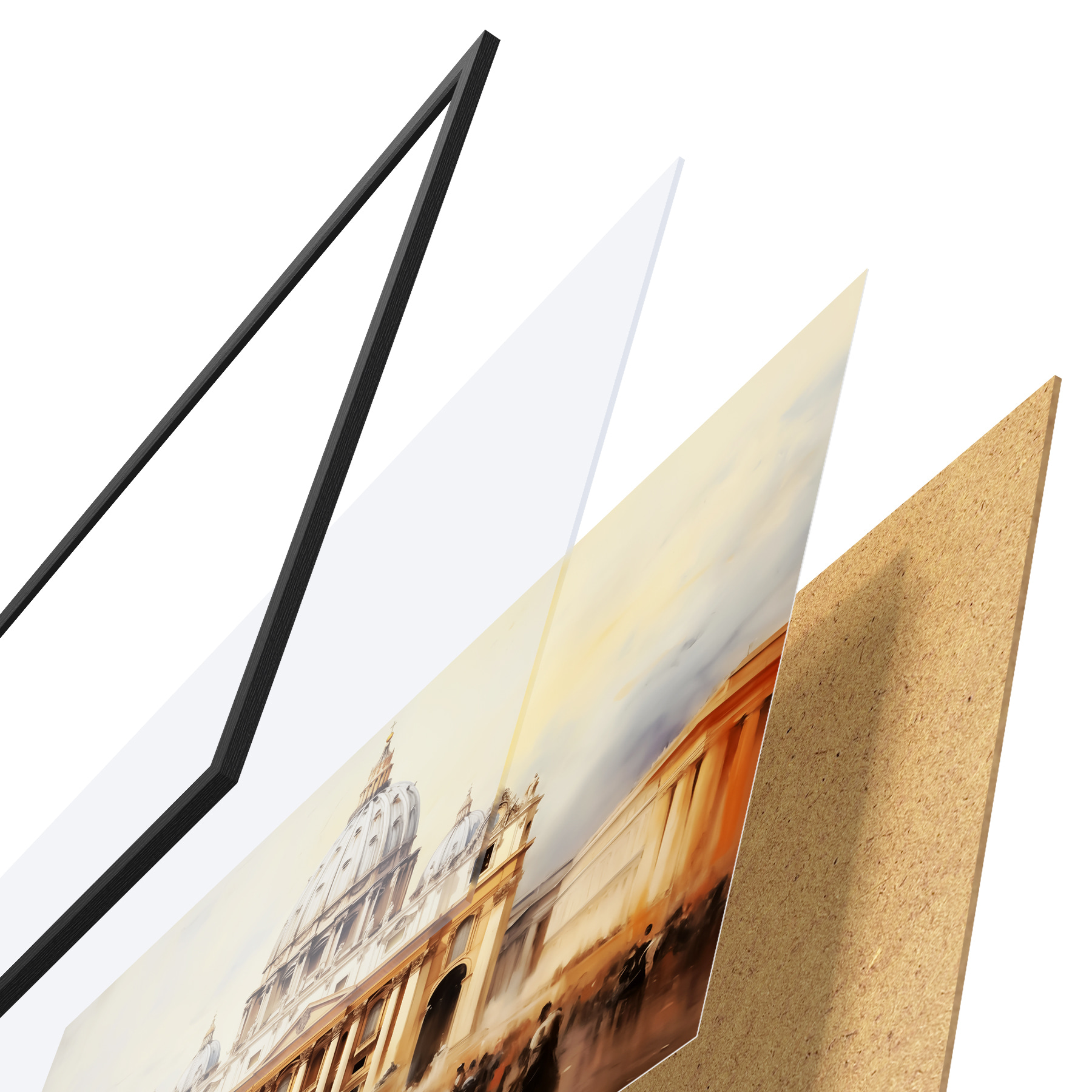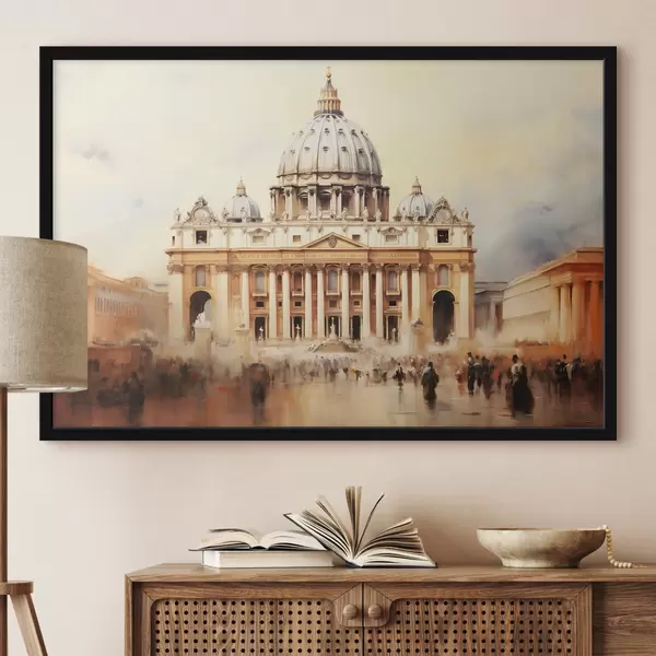 Plakatas Vatikano pastatas, žmonės vaikšto aikštėje aliejiniame paveiksle Ne f39816