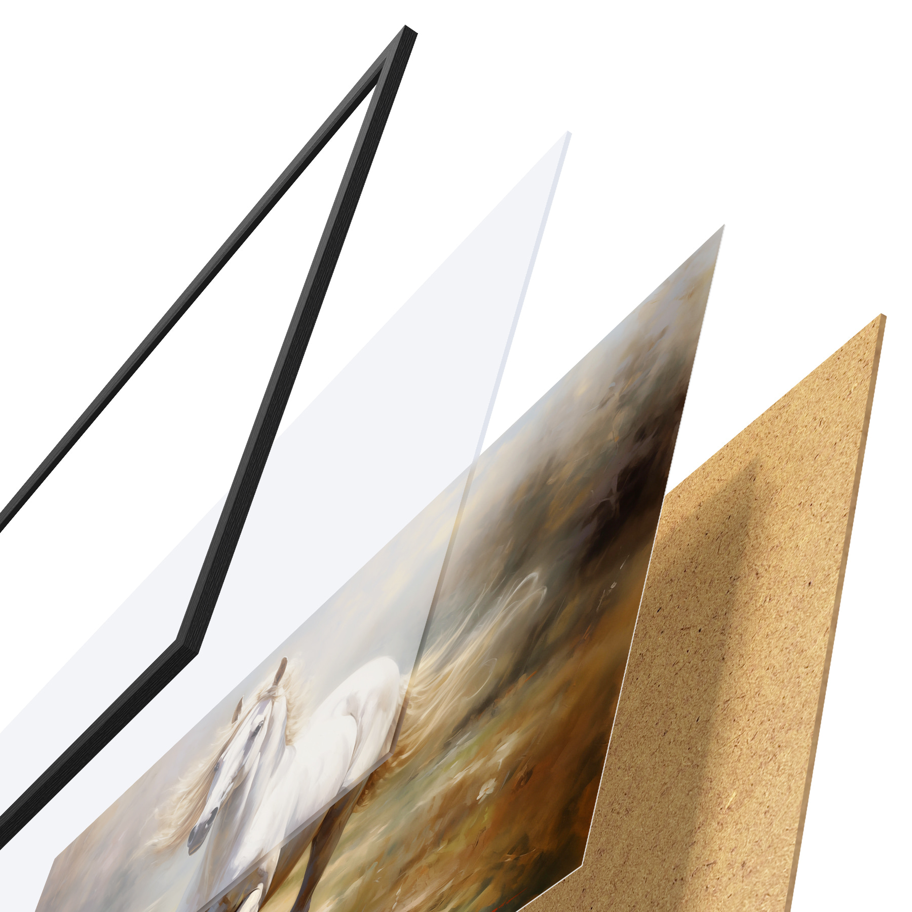 Plakatas Baltas arklys, šuoliuojantis per pievą, aliejinis paveikslas Ne f39818