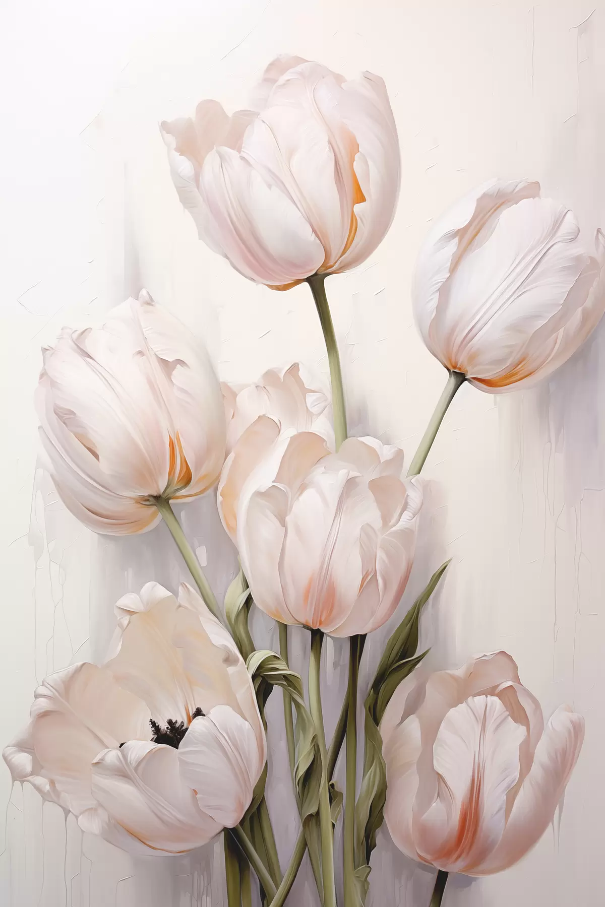 Plakatas Baltos tulpės šviesiame fone aliejinis paveikslas f39821