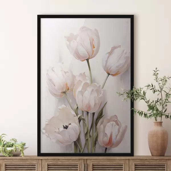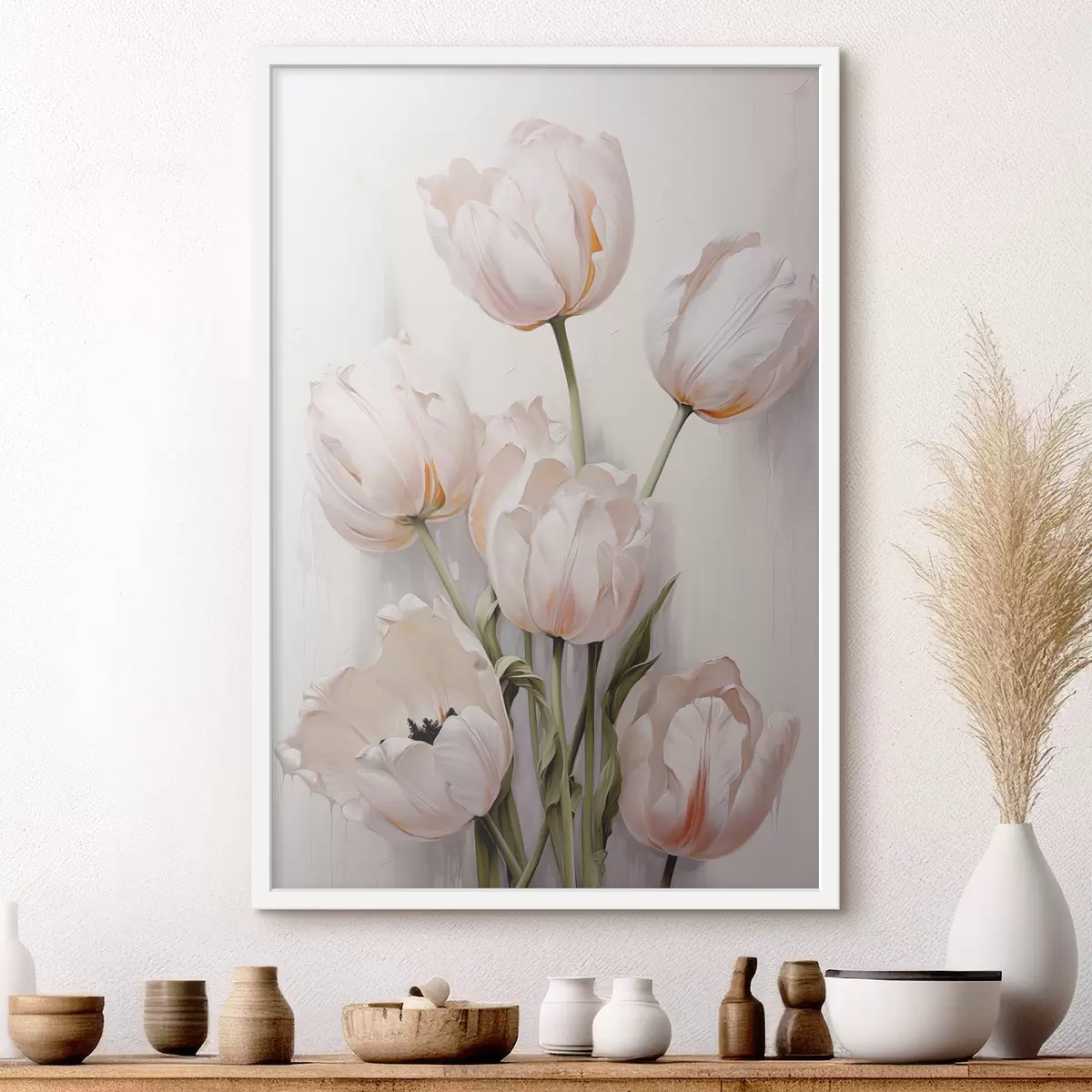 Plakatas Baltos tulpės šviesiame fone aliejinis paveikslas Ne f39821