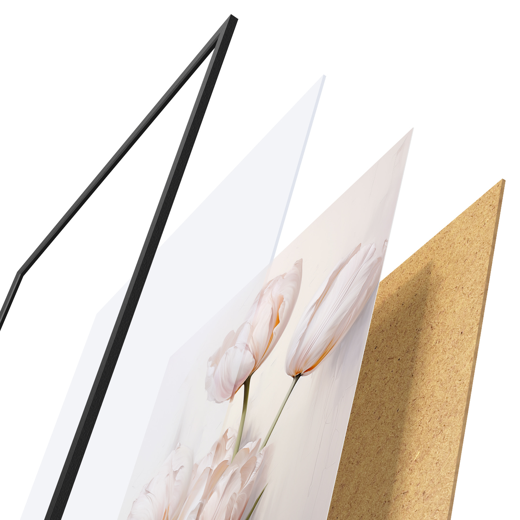 Plakatą sudaro rėmas, pleksiklas, atspausdintas vaizdas ir medžio drožlių plokštės pagrindas. Plakatą galima iš karto pakabinti ant sienos dėl kitoje pusėje esančių laikiklių.