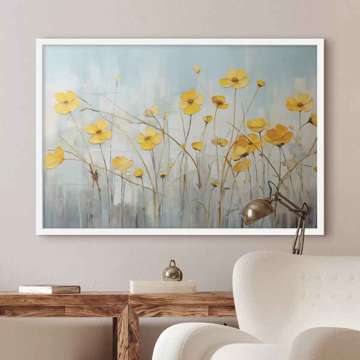 Plakatas Geltonos mažos gėlės ant ilgo stiebo aliejinio paveikslo Ne f39823