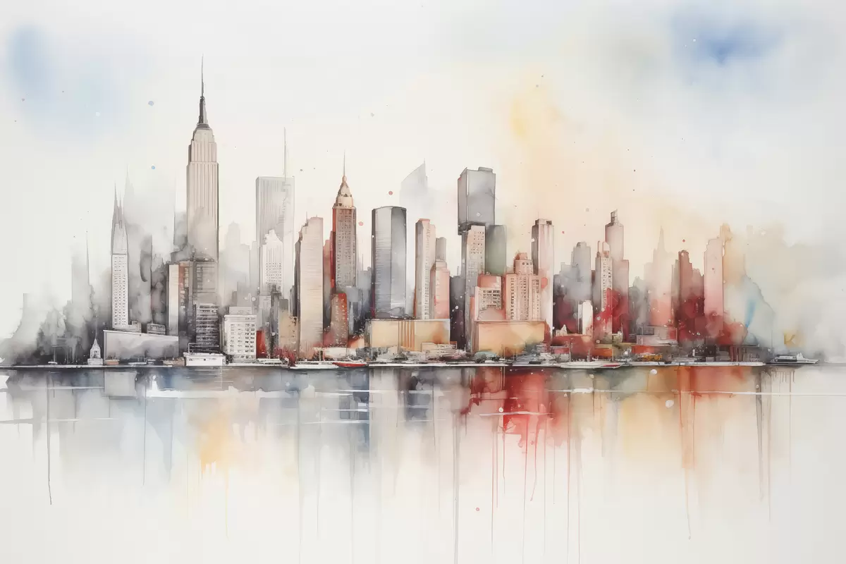 Plakatas Niujorko vaizdas, pastatų siluetai, akvarelė f39828