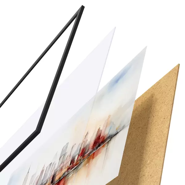 Plakatą sudaro rėmas, pleksiklas, atspausdintas vaizdas ir medžio drožlių plokštės pagrindas. Plakatą galima iš karto pakabinti ant sienos dėl kitoje pusėje esančių laikiklių.