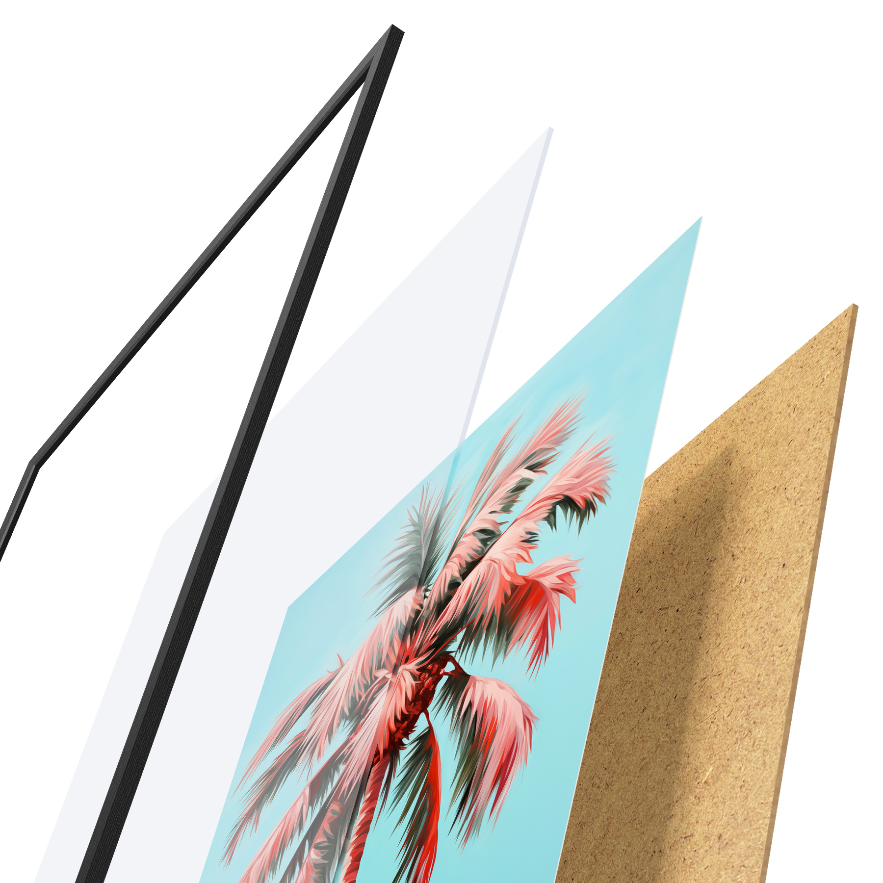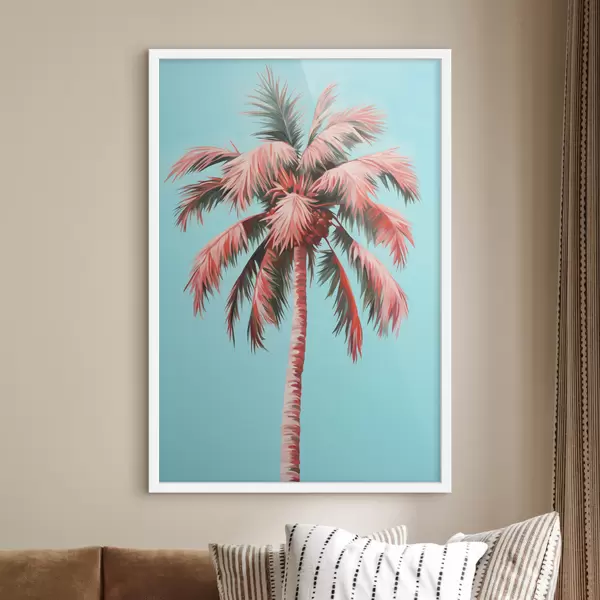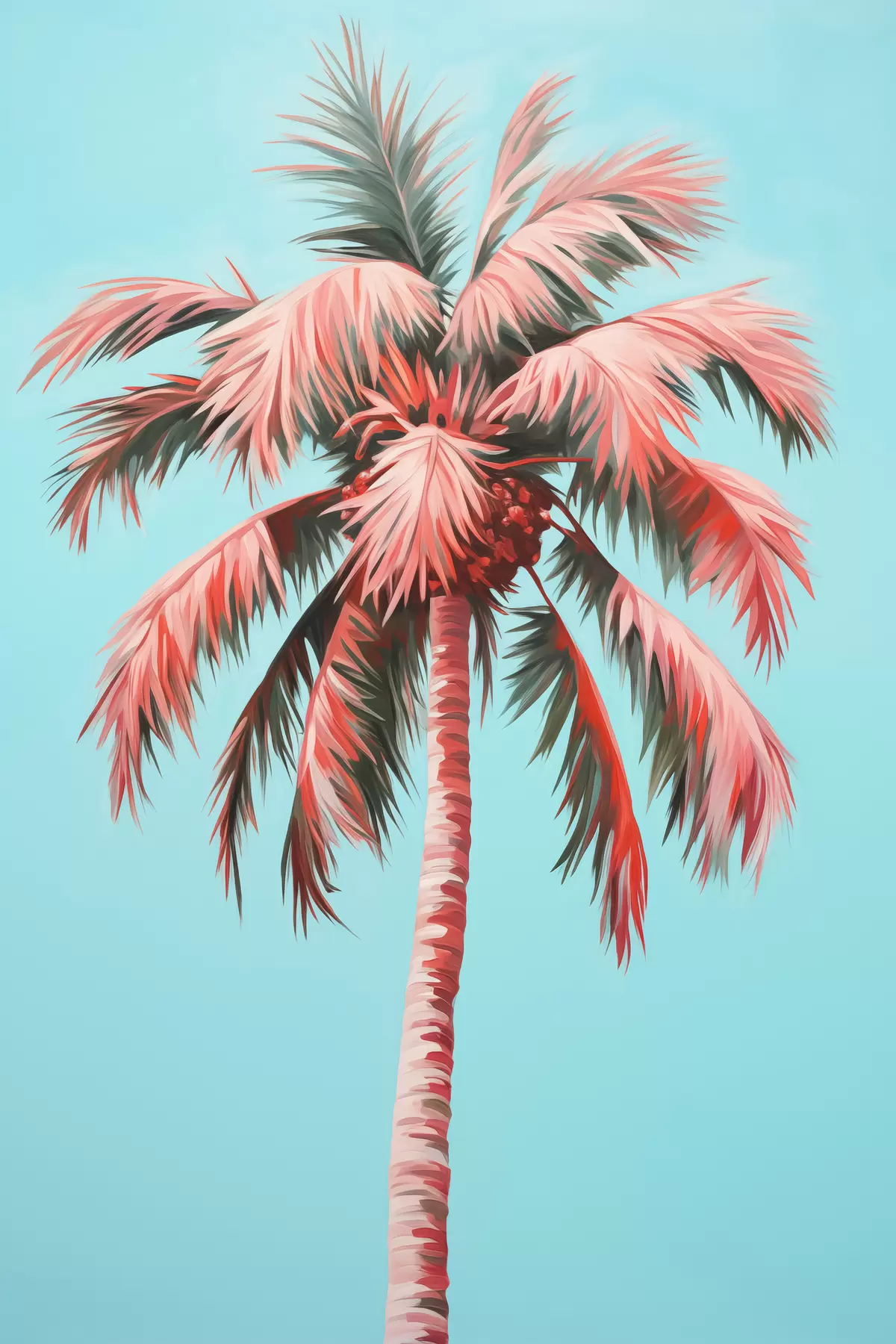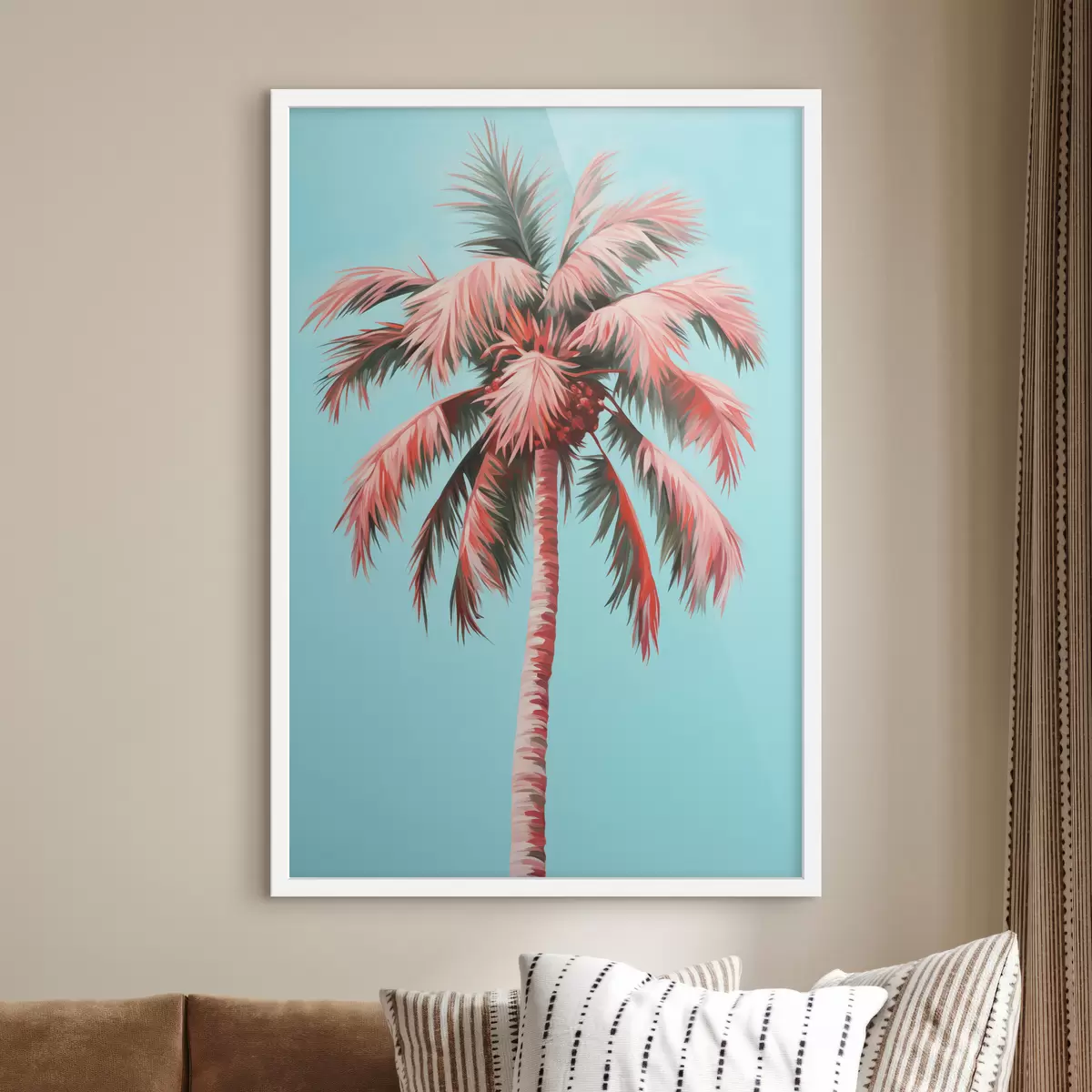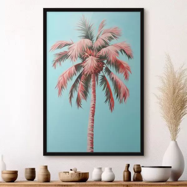 Plakatas Rožinė palmė ant mėlyno aliejaus paveikslo Ne f39830