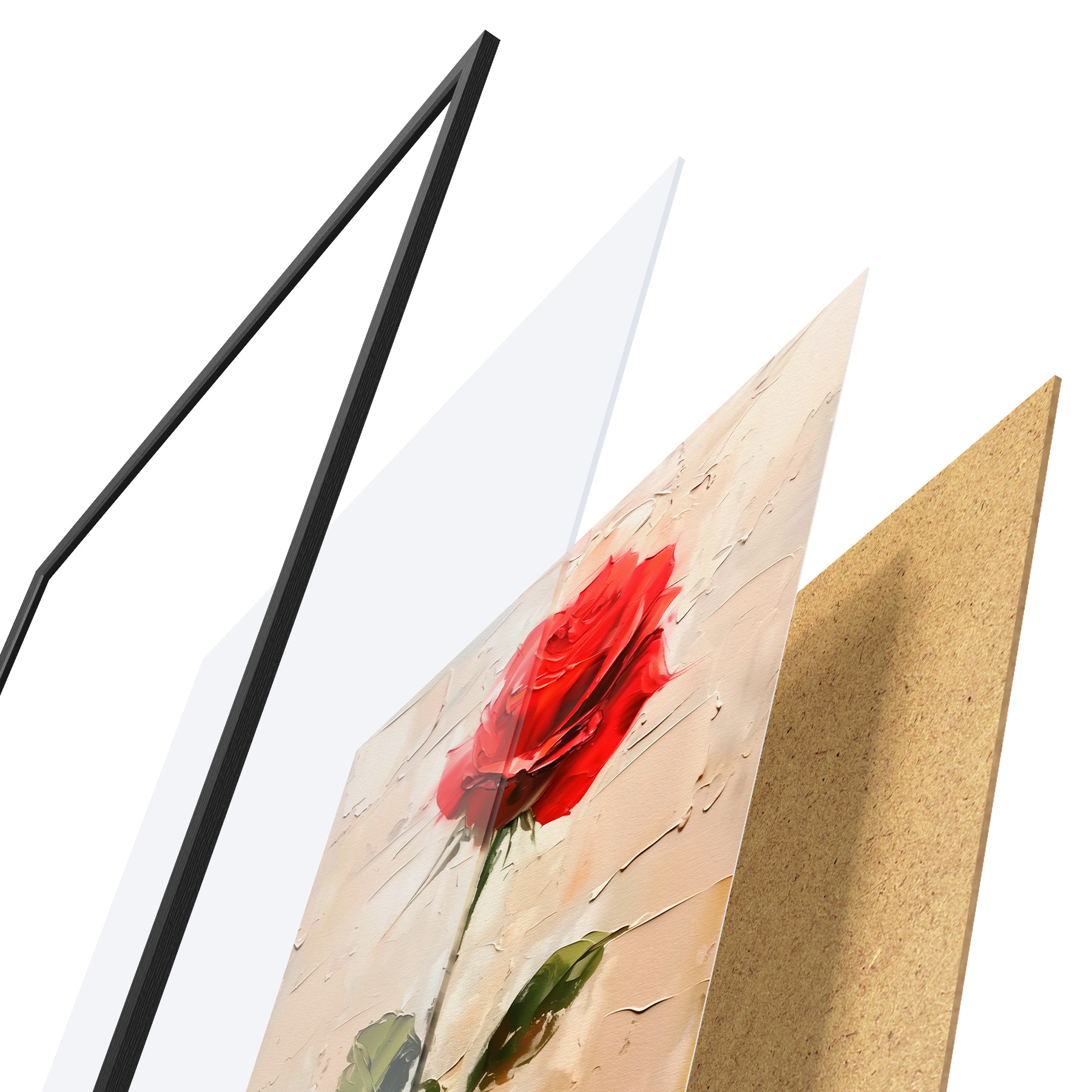 Plakatą sudaro rėmas, pleksiklas, atspausdintas vaizdas ir medžio drožlių plokštės pagrindas. Plakatą galima iš karto pakabinti ant sienos dėl kitoje pusėje esančių laikiklių.