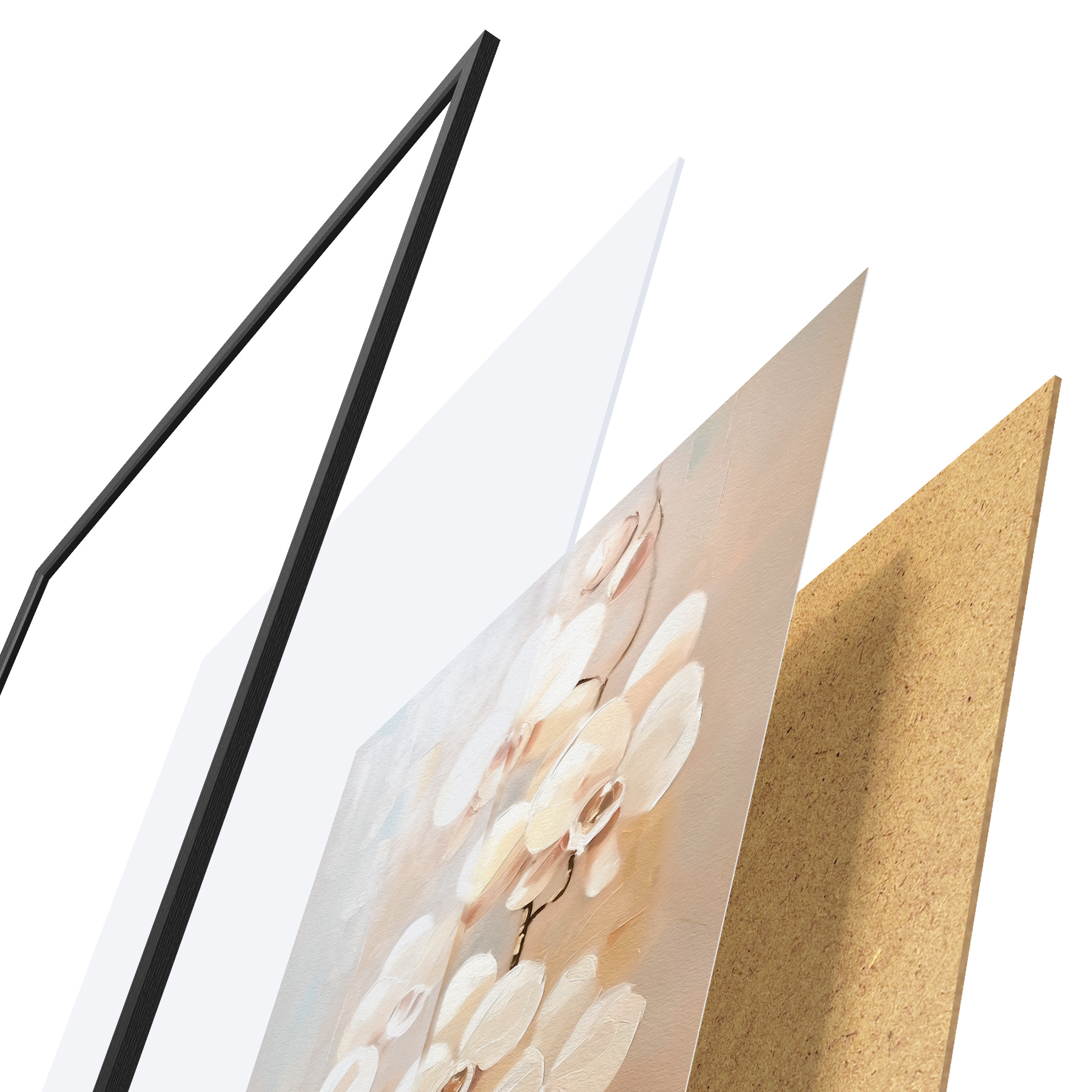 Plakatą sudaro rėmas, pleksiklas, atspausdintas vaizdas ir medžio drožlių plokštės pagrindas. Plakatą galima iš karto pakabinti ant sienos dėl kitoje pusėje esančių laikiklių.