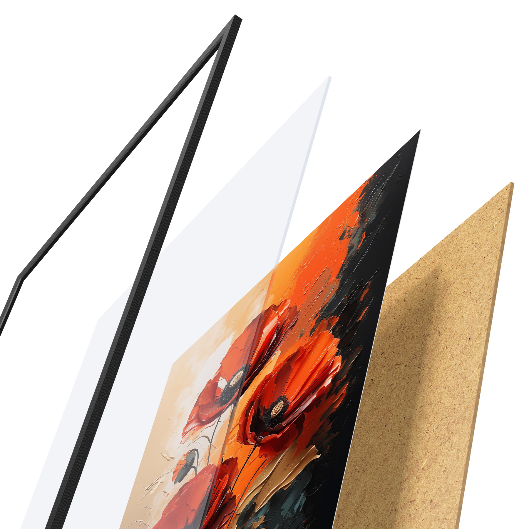 Plakatą sudaro rėmas, pleksiklas, atspausdintas vaizdas ir medžio drožlių plokštės pagrindas. Plakatą galima iš karto pakabinti ant sienos dėl kitoje pusėje esančių laikiklių.