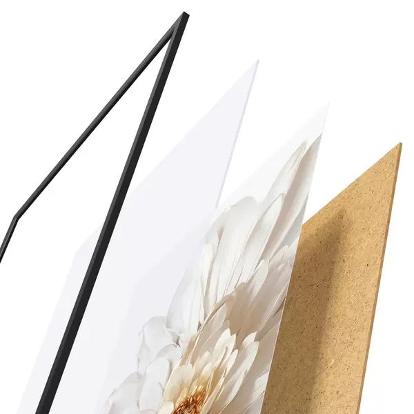 Plakatą sudaro rėmas, pleksiklas, atspausdintas vaizdas ir medžio drožlių plokštės pagrindas. Plakatą galima iš karto pakabinti ant sienos dėl kitoje pusėje esančių laikiklių.