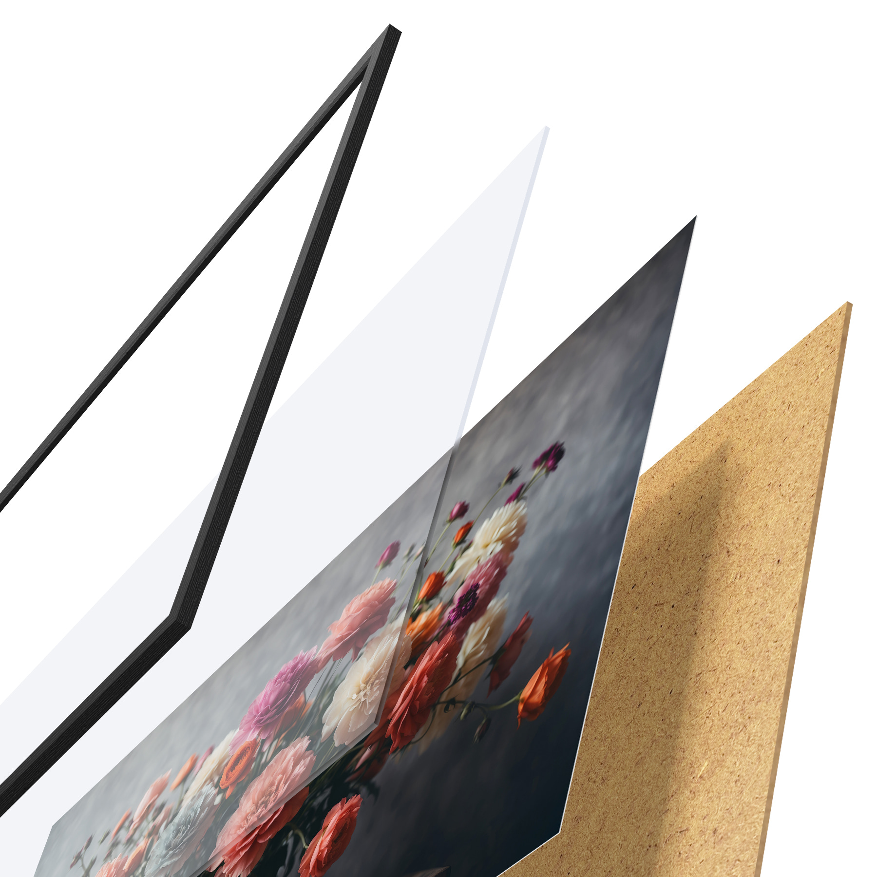 Plakatą sudaro rėmas, pleksiklas, atspausdintas vaizdas ir medžio drožlių plokštės pagrindas. Plakatą galima iš karto pakabinti ant sienos dėl kitoje pusėje esančių laikiklių.