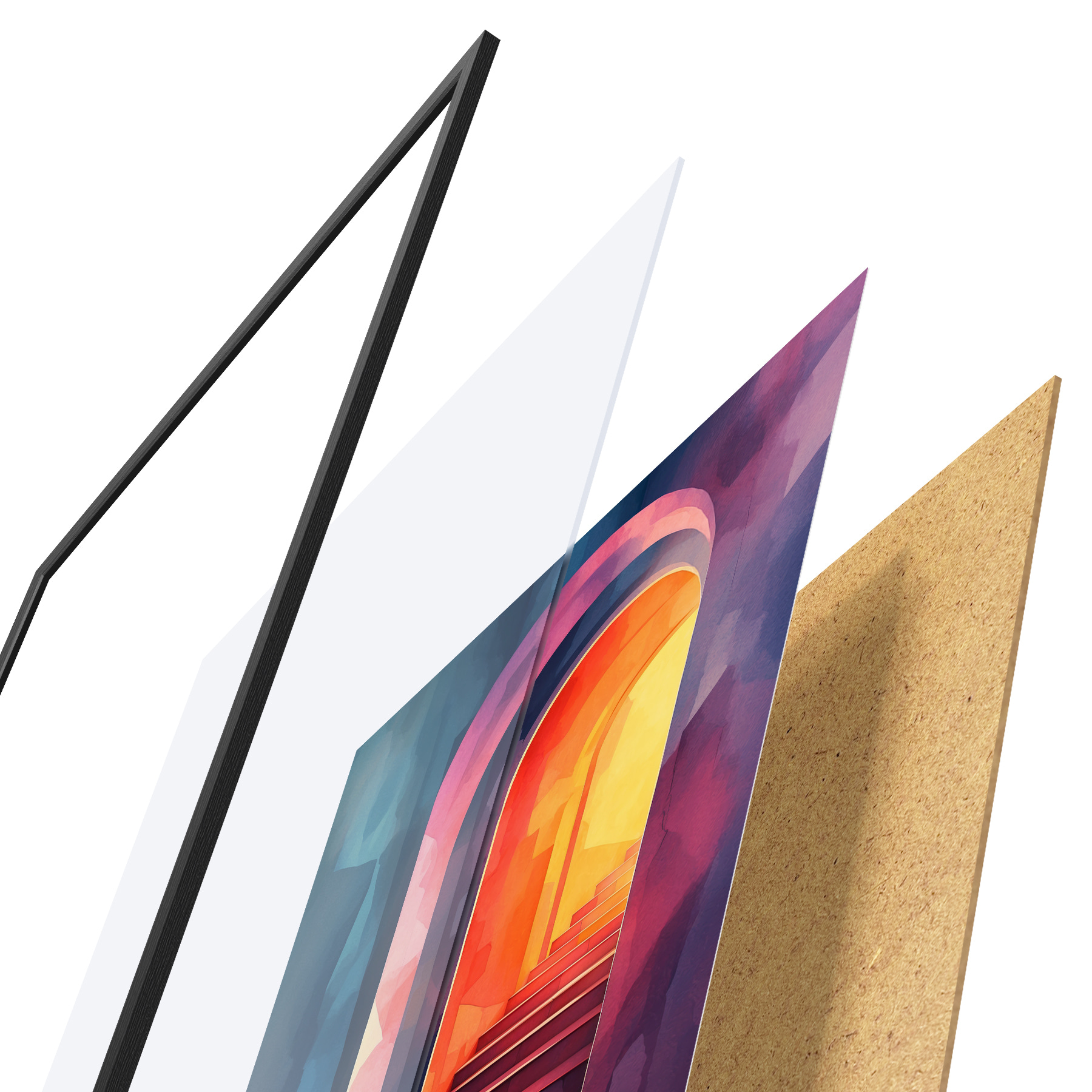 Plakatą sudaro rėmas, pleksiklas, atspausdintas vaizdas ir medžio drožlių plokštės pagrindas. Plakatą galima iš karto pakabinti ant sienos dėl kitoje pusėje esančių laikiklių.