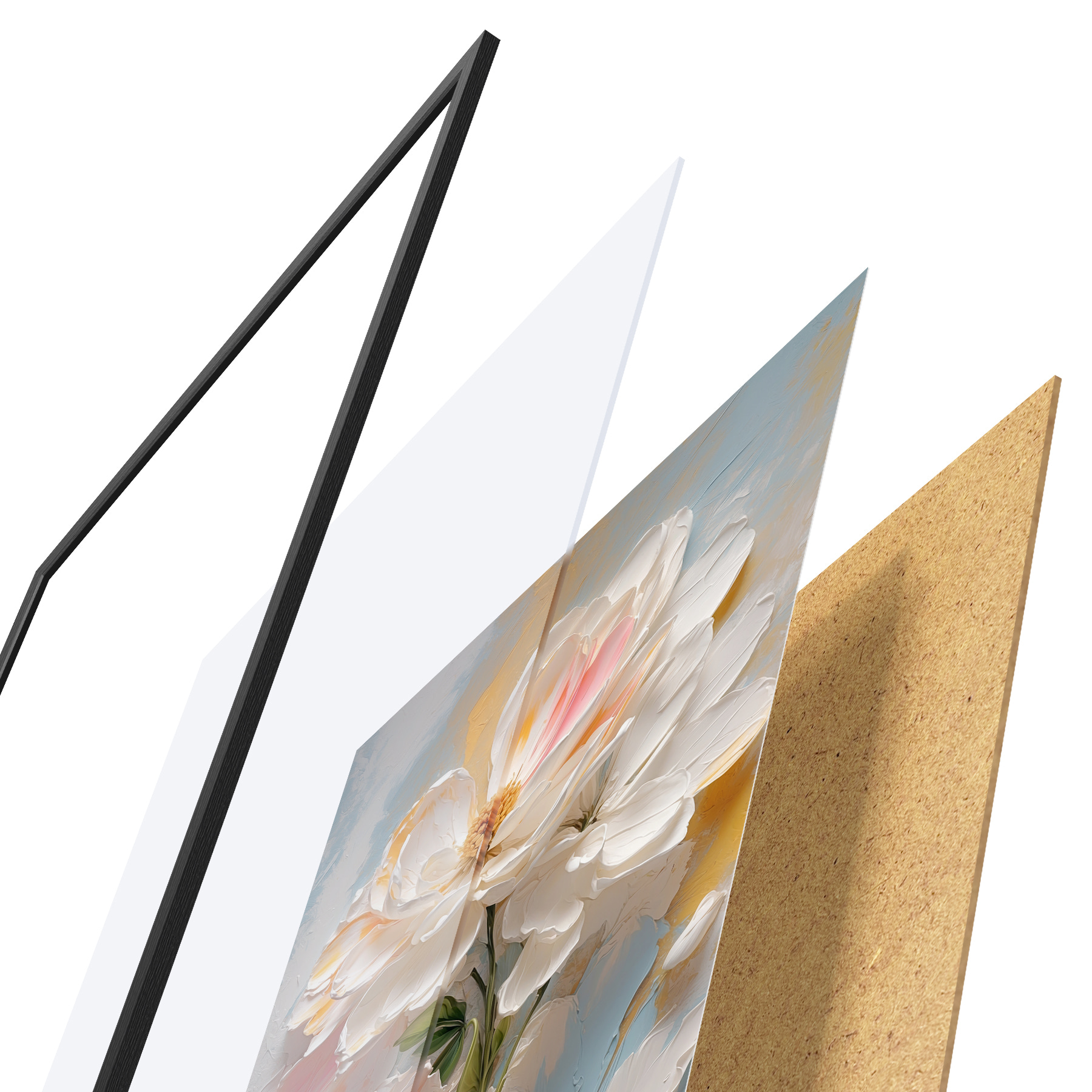 Plakatą sudaro rėmas, pleksiklas, atspausdintas vaizdas ir medžio drožlių plokštės pagrindas. Plakatą galima iš karto pakabinti ant sienos dėl kitoje pusėje esančių laikiklių.