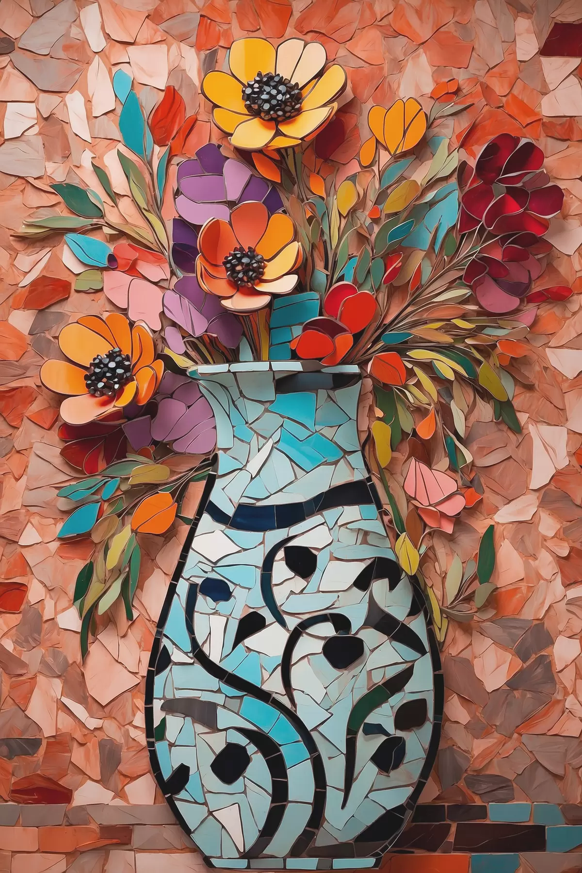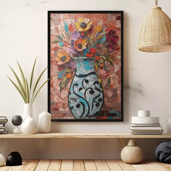 Plakatas Mozaikinio stiliaus vaza su gėlėmis f39867