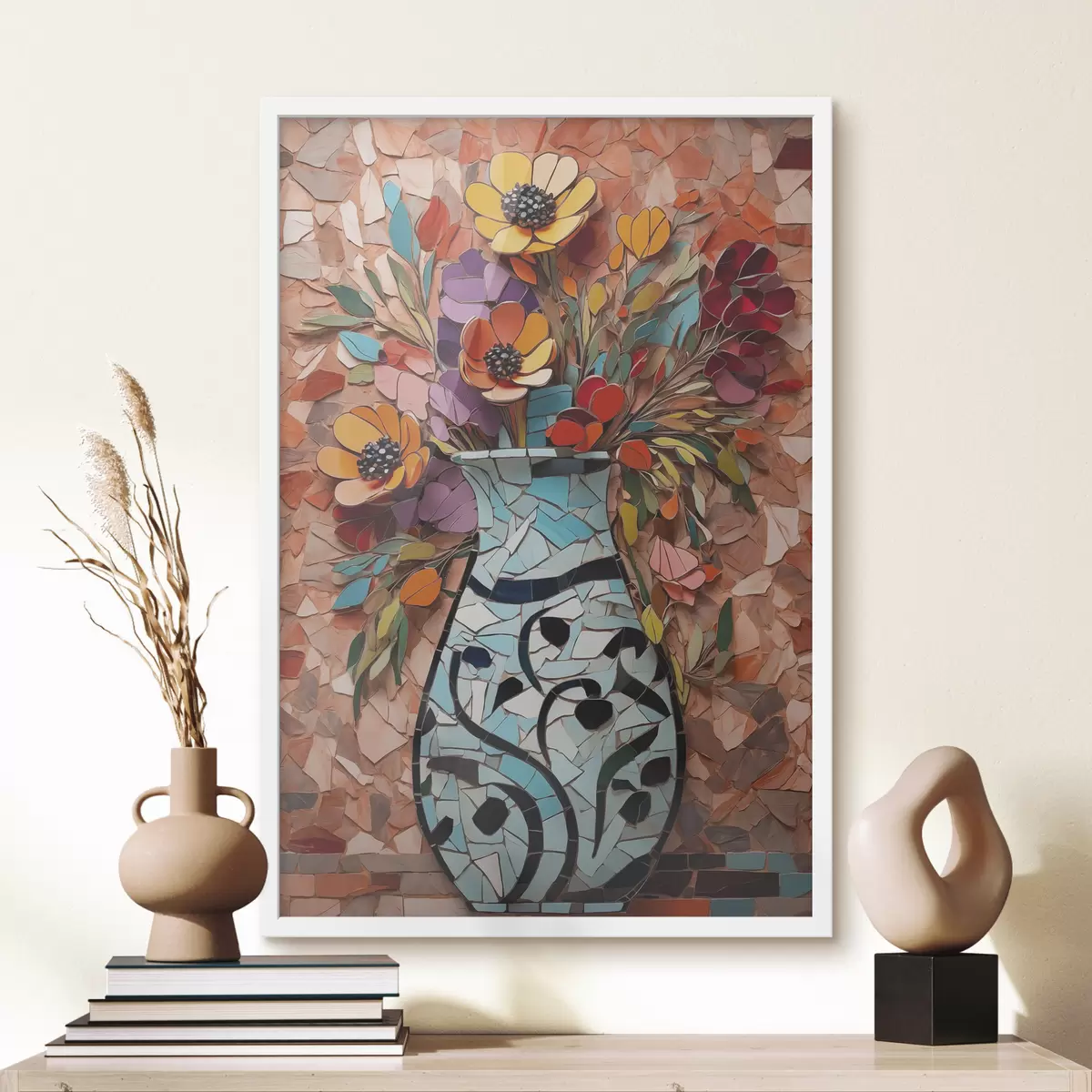 Plakatas Mozaikinio stiliaus vaza su gėlėmis Ne f39867