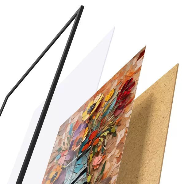 Plakatą sudaro rėmas, pleksiklas, atspausdintas vaizdas ir medžio drožlių plokštės pagrindas. Plakatą galima iš karto pakabinti ant sienos dėl kitoje pusėje esančių laikiklių.